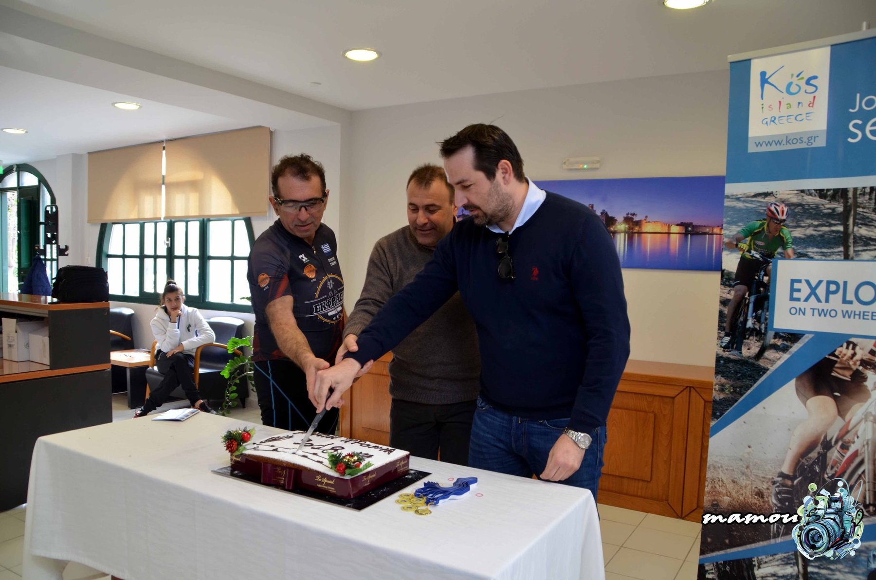 Στο χώρο ενημέρωσης του δημοτικού οργανισμού τουρισμού ολοκληρώθηκε η κοπή της πίτας των αθλητών ποδηλασίας και των 3 συλλόγων του νησιού του Π.Ο.Κ. Κω του Σπάρτακου και του Φιλίνου.