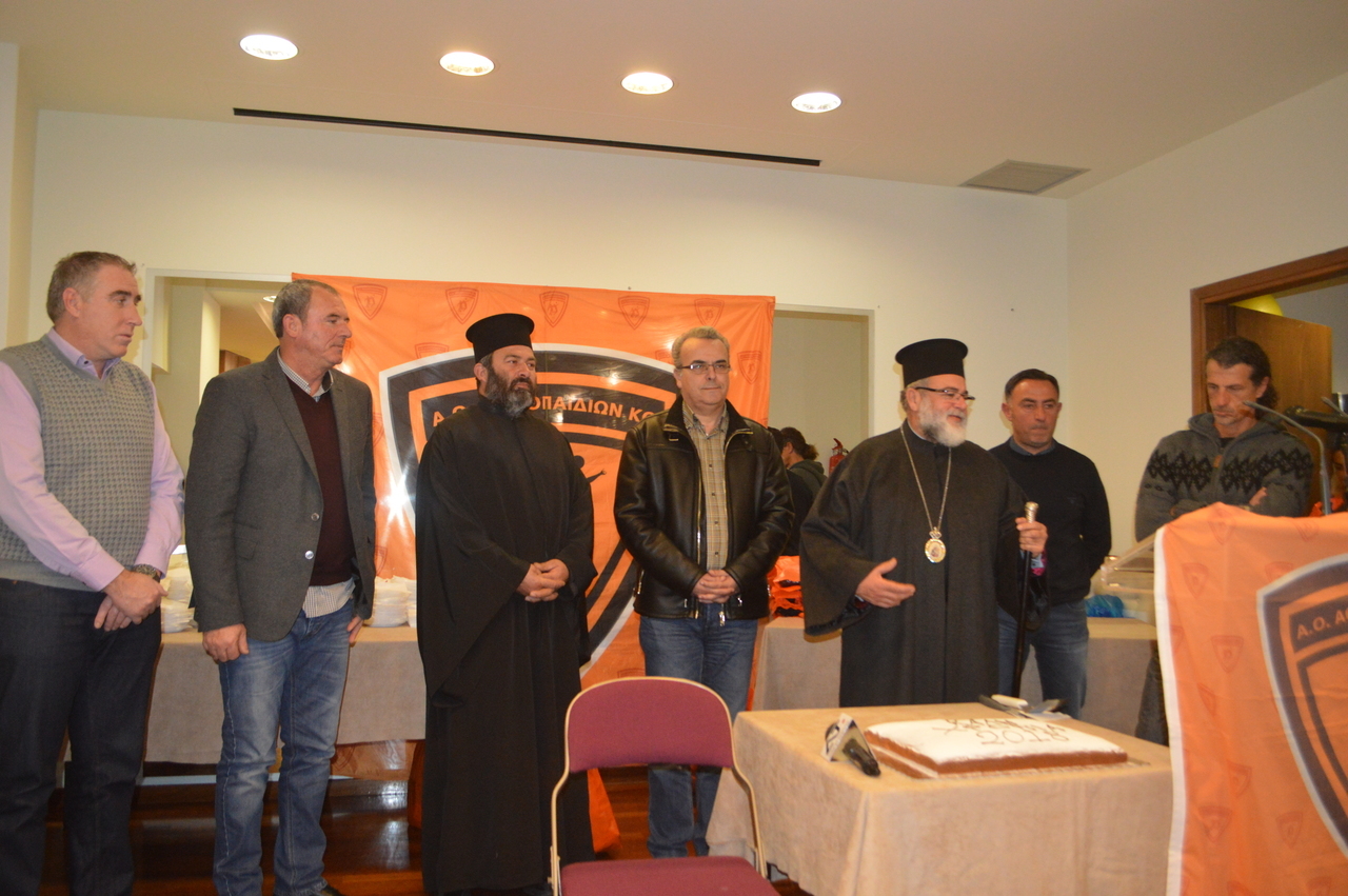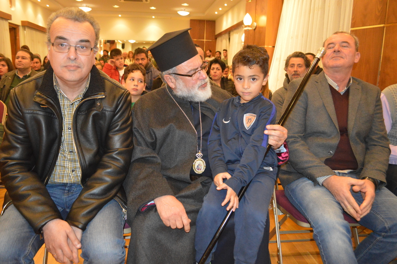 Ακολούθησε η ευλογία και οι ευχές του Σεβασμιωτάτου (συμπαραστατούμενος από τον π. Νικόλαο Γρύλλη) για ευτυχισμένη και χαρούμενη νέα χρονιά με πολλές επιτυχίες. Η επιτυχία έχει δύο σκέλη αυτό που φαίνεται και αυτό που δεν φαίνεται, το οποίο όμως μπορεί να φανεί στο μέλλον γι’ αυτό και ελπίζουμε πάντα στο αύριο».