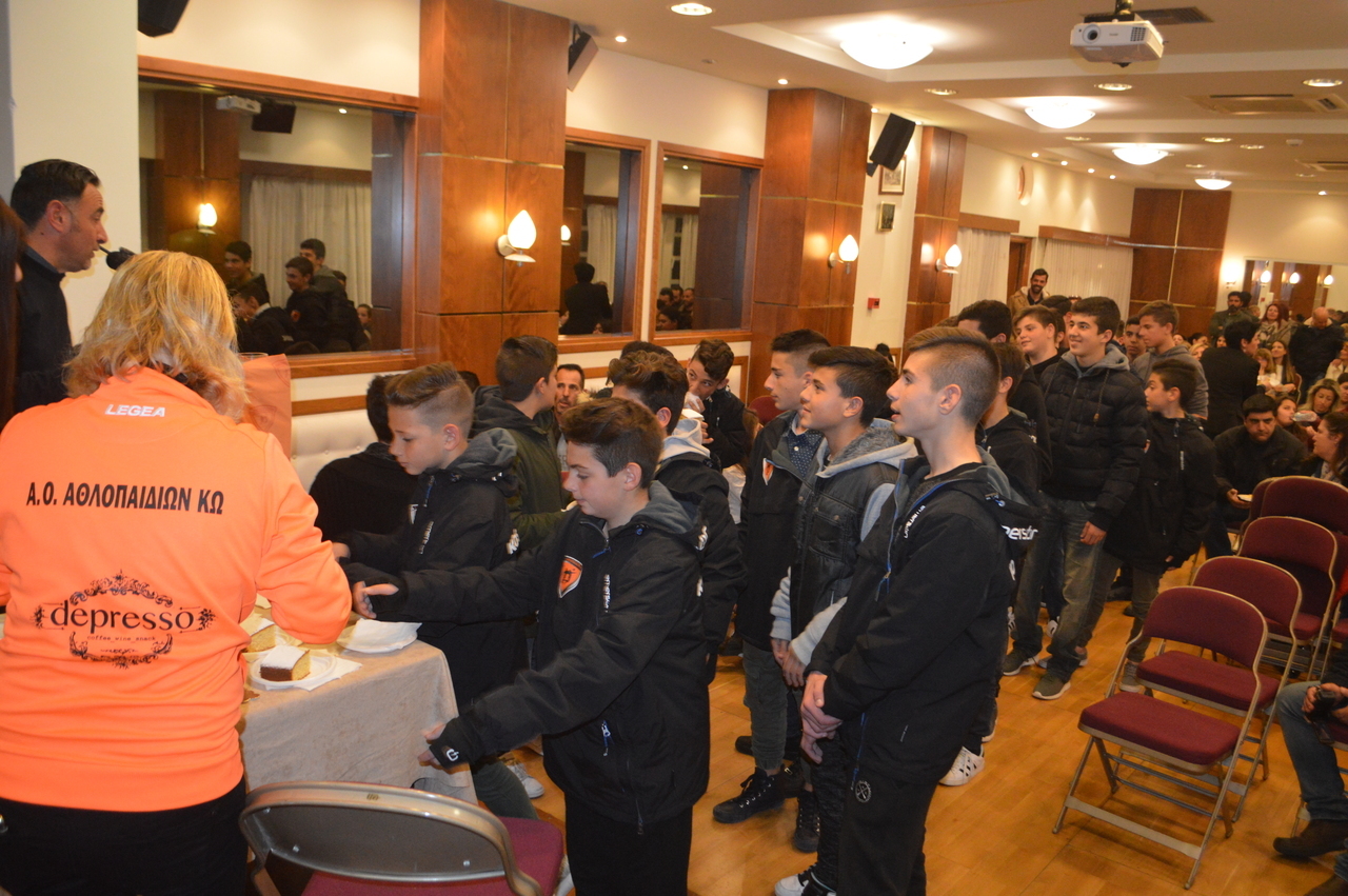 Σε πολύ ζεστή και ευχάριστη ατμόσφαιρα πραγματοποιήθηκε απόψε η εκδήλωση κοπής της βασιλόπιτας των 11 τμημάτων του ΑΟ Αθλοπαιδιών Κω (ουσιαστικά κόπηκαν 11 βασιλόπιτες…) στην κατάμεστη από κόσμο (μέσα και έξω στο διάδρομο) αίθουσα εκδηλώσεων του ξενοδοχείου Kos Hotel Junior Suites.