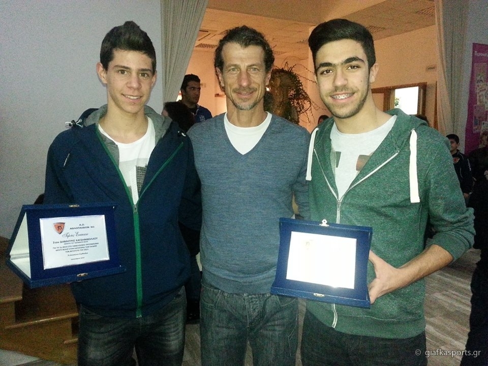 Στη συνέχεια ο πρόεδρος του ομίλου κος.Χατζηάμαλλος βράβευσε τον Αλεξ.Μαργαρίτη για τις επιτυχίες του στο χώρο του ποδοσφαίρου (το βραβείο παρέλαβε ο πατέρας του). Ο παπά-Γιάννης βράβευσε το ζευγάρι του Μπιτς βόλεϊ Χριστοφοράκη Στ. και Χατζηνικολάου Δημ. που κατέκτησαν το αργυρό μετάλλιο στο πανελλήνιο πρωτάθλημα. Και ο νονός του Δημ. Χατζηνικολάου, Σταύρος Καραναστάσης, έδωσε το βραβείο στη μητέρα του μιας και ο Δημήτρης ήρθε μετά από λίγο.