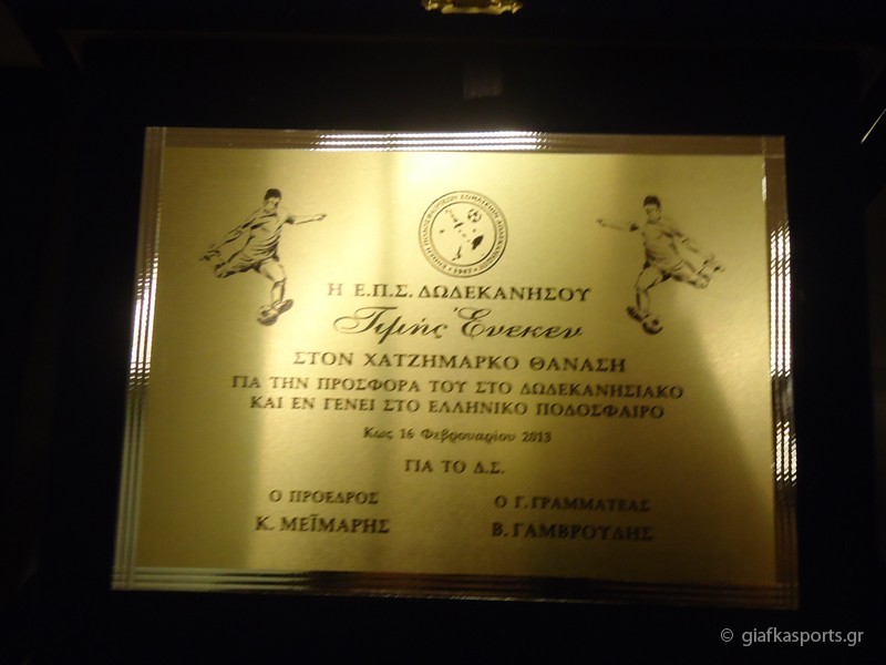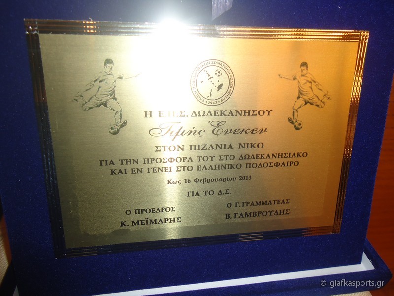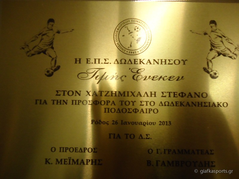 Αξίζει να σημειώσουμε ότι κατά την διάρκεια της βραδιάς τιμήθηκαν για προσφορά τους στον Δωδεκανησιακό ποδόσφαιρο οι Γιώργος Ανδρογιώργης, Νίκος Πιζάνιας, Στέφανος Χατζημιχάλης, Βασίλης Χατζηγιακουμής, Μιχάλης Κοκκαλάκης, Θανάσης Χατζημάρκος όπως και η γυναικεία ομάδα του Φιλίνος με τον πρόεδρο της μάλιστα Βασίλη Χατζηπαυλή να κάνει το πιο «εύστοχο» σχόλιο της βραδιάς λέγοντας αφενός στην δημοτική αρχή ότι οι ομάδες χρειάζονται περισσότερη βοήθεια και αφετέρου στην Ένωση ότι πρέπει να βρεθεί μια λύση σχετικά με ταξίδια αφού οι ομάδες αναγκάζονται να ταξιδεύουν καθημερινές στην Ρόδο.