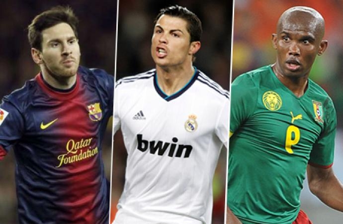 #3. Σαμουέλ Ετό – Αξία: €57.000.000 Άλλος ένας ποδοσφαιριστής που αν και είναι κοντά στην δύση της καριέρας του, εντούτοις βρίσκεται στη σχετική λίστα. Αν και στα 30+ χρόνια του, ο Ετό αμειβόταν με ένα πλούσιο συμβόλαιο αξίας €13.000.000 ετησίως για να προσφέρει τις υπηρεσίες του στην ρωσική Ανζί, ενώ μέχρι σήμερα έχει ήδη συγκεντρώσει αρκετά εκατομμύρια από το πέρασμα του από Μπαρτσελόνα, Τσέλσι και Ίντερ. Τέλος, αμείβεται με άλλα €4.000.000 ετησίως από τους χορηγούς του όπως η PUMA, Ford και John Richmond.
