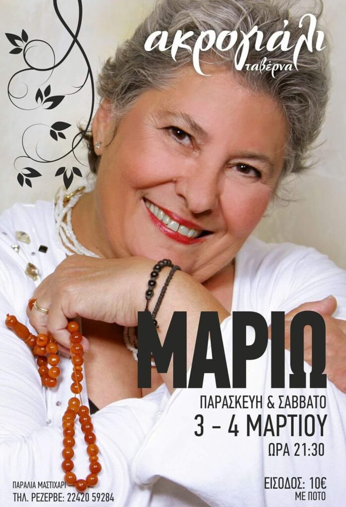 Αύριο και μεθαύριο θα έχετε την ευκαιρία να απολαύσετε την μοναδική Μαριώ στο Ακρογιάλι στο Μαστιχάρι.