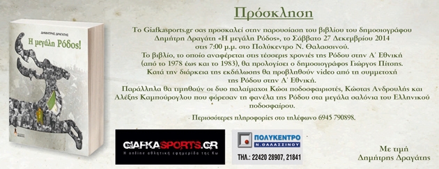 προσκαλεί στην παρουσίαση του βιβλίου του δημοσιογράφου Δημήτρη Δραγάτη «Η