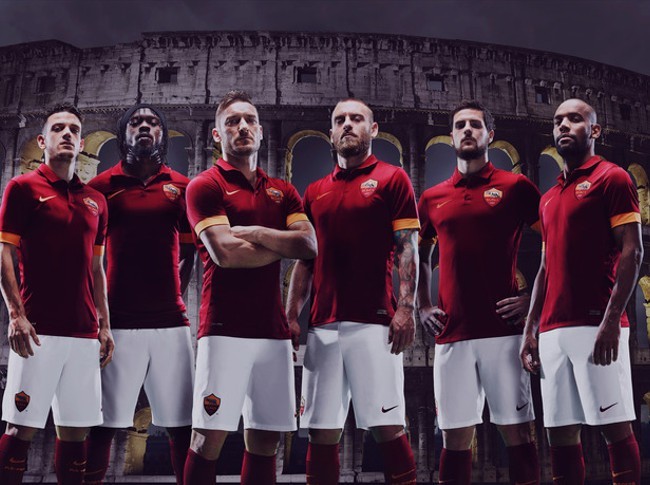 Στο κλασσικό της μπορντό χρώμα, με γιακά και κίτρινες λεπτομέρειες, είναι η νέα, εντυπωσιακή εμφάνιση της Ρόμα για την αγωνιστική περίοδο 2014-2015.