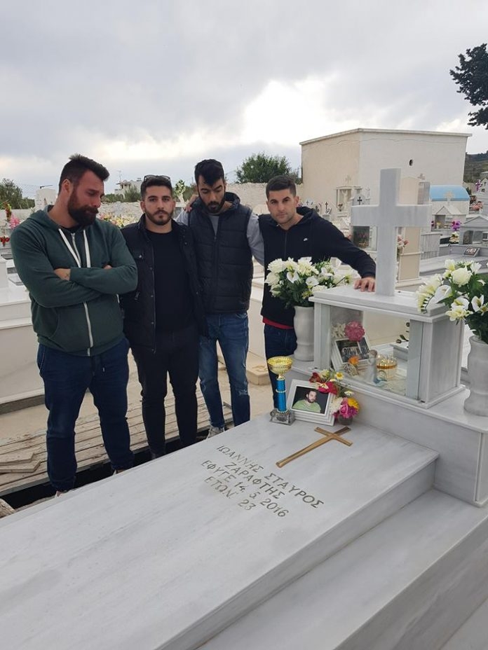 Η νικήτρια ομάδα καταθέτει το κύπελλο στο μνήμα του Γιάννη Ζαράφτη – Ευχαριστήριο απ’ την οικογένεια του