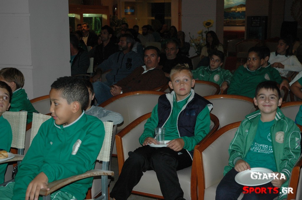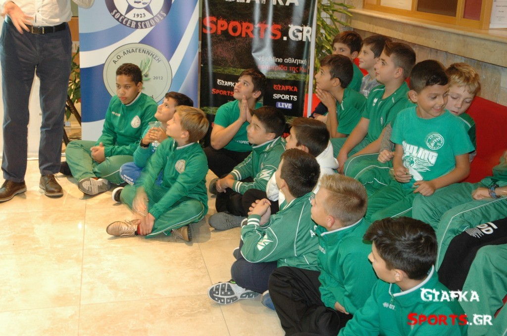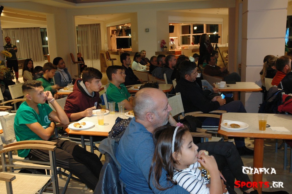 Αρχικά τον λόγο πήρε ο πρόεδρος των «πρασίνων» κύριος Ξενικός που ευχαρίστησε τον κόσμο για την παρουσία του, τόνισε πόσο σημαντική είναι αυτή είναι η συνεργασία για την Αναγέννηση ενώ πριν δώσει τον λόγο στον υπεύθυνο ακαδημιών του συλλόγου τίμησε τον κ. Ήλιο (στο ξενοδοχείο του οποίου έγινε η παρουσίαση) για την προσφορά του στην ομάδα (είχε διατελέσει μέχρι και πρόεδρος) παραδίδοντας του μια αναμνηστική πλακέτα.
