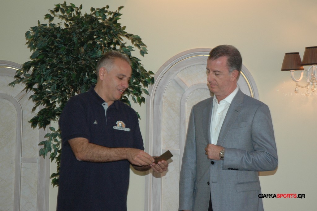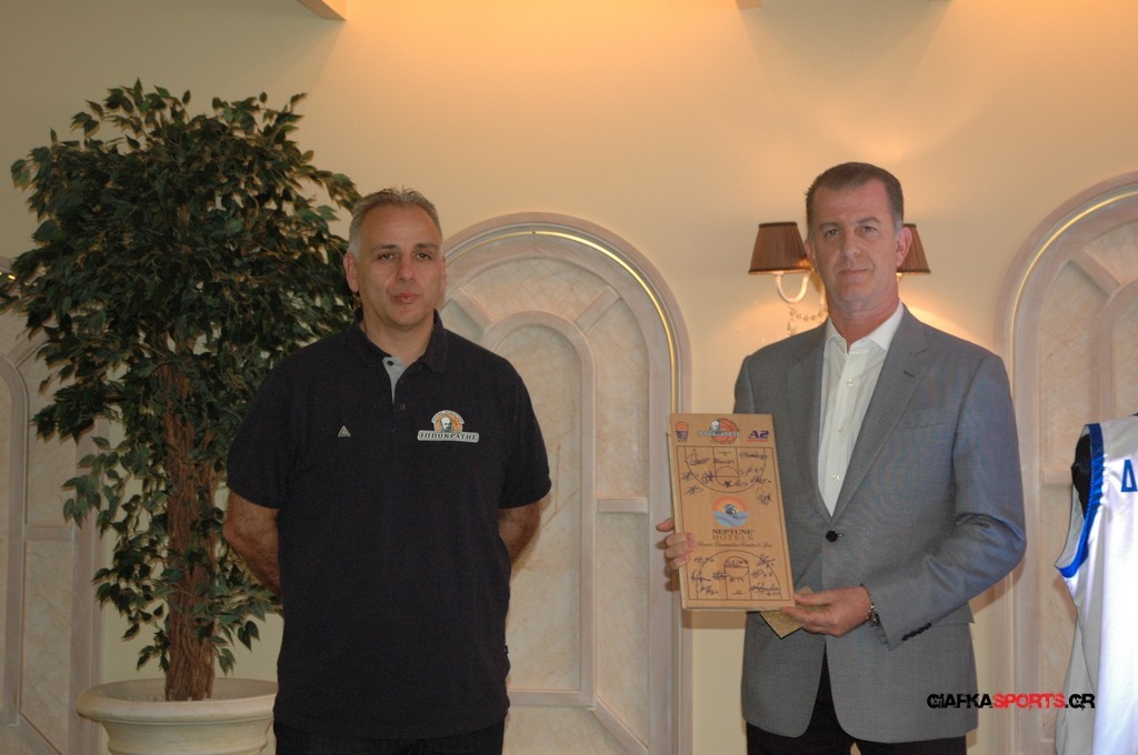Σήμερα το πρωί στο ξενοδοχείο Neptune πραγματοποιήθηκε η παρουσίαση της φανέλας του Ιπποκράτη παρουσία του αρχηγού της ομάδας Αντώνη Ασημακόπουλου, του Κώστα Χαρίση αλλά και του προπονητή της ομάδας Σάββα Συμεωνίδη. Στο περιθώριο της παρουσίασης ο Σάββας Συμεωνίδης παρέδωσε στον διευθυντή του ξενοδοχείου κ. Κώστα Ζαρίκο μια κάρτα διαρκείας του συλλόγου ενώ ο Αντώνης Ασημακόπουλος ένα κομμάτι απ’ το παλιό παρκέ του Κλειστού γυμναστηρίου με τις υπογραφές των παικτών.