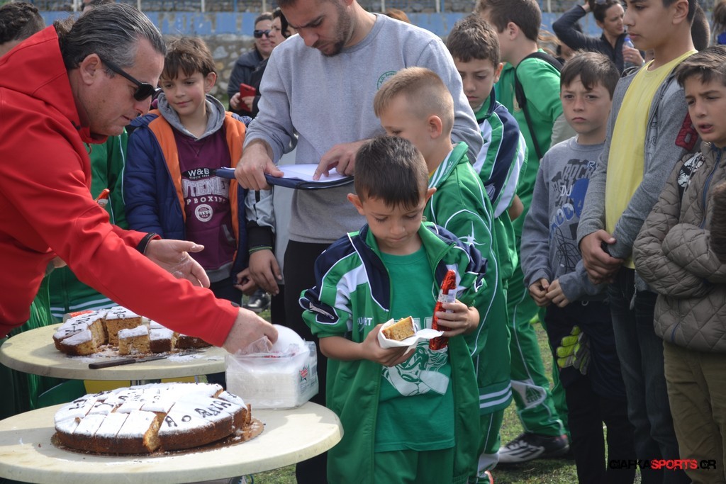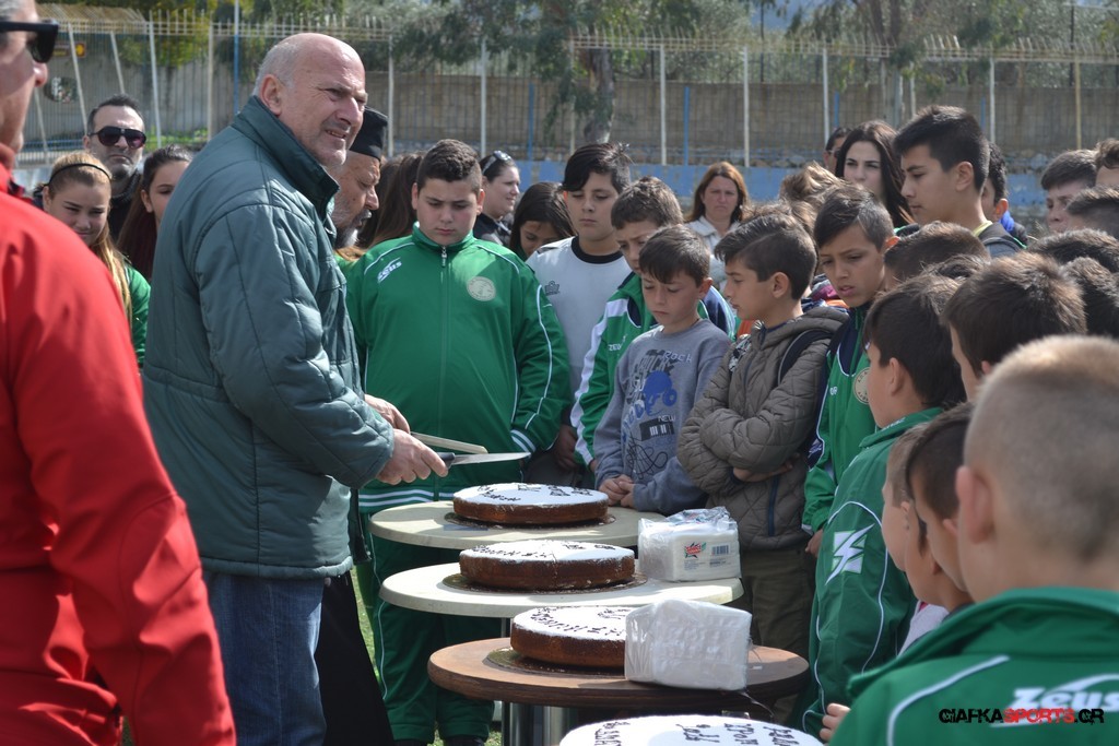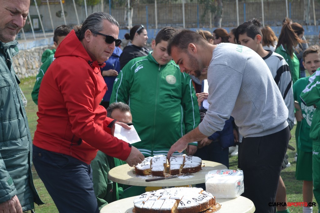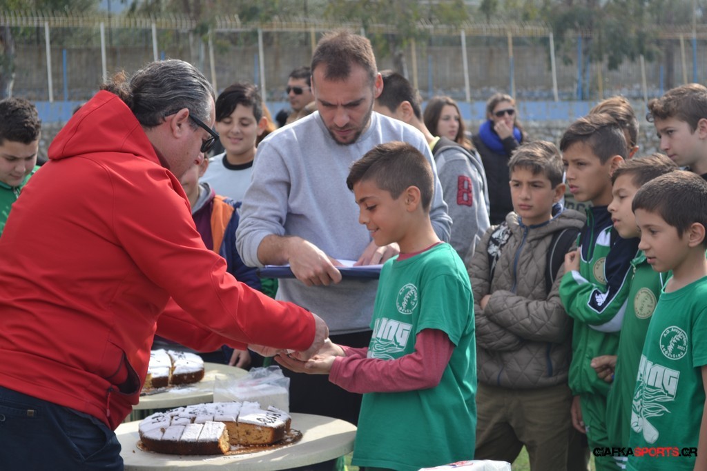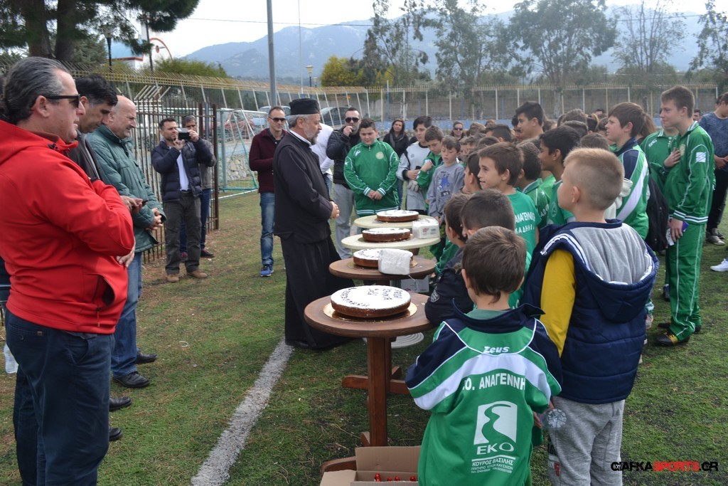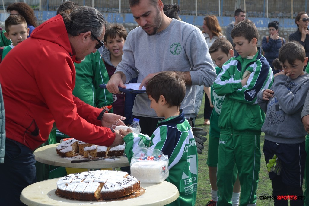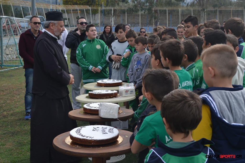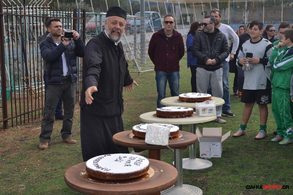 Τη πίτα ευλόγησε ο πάτερ Ιωάννης Κουτάντος που ευχήθηκε υγεία πάνω από όλα, και έκανε ιδιαίτερη μνεία για τα πολλά παιδιά που βρίσκονται στο γήπεδο και δίνουν ζωή στην ομάδα, δίνοντας έτσι το κίνητρο στους διοικούντες να συνεχίσουν να προσπαθούν για το καλύτερο δυνατό.