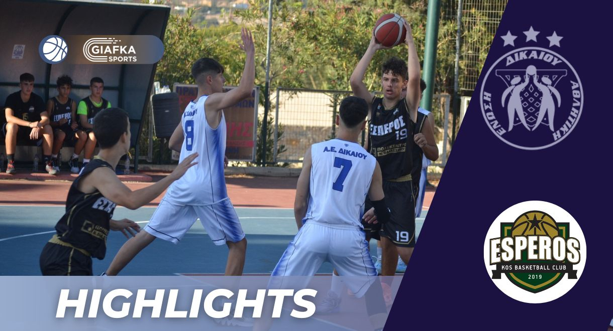 Δείτε τα highlights της νίκης της Α.Ε Δικαίου απέναντι στον Έσπερο για το παιδικό πρωτάθλημα του ομίλου νήσων με 73-47.
