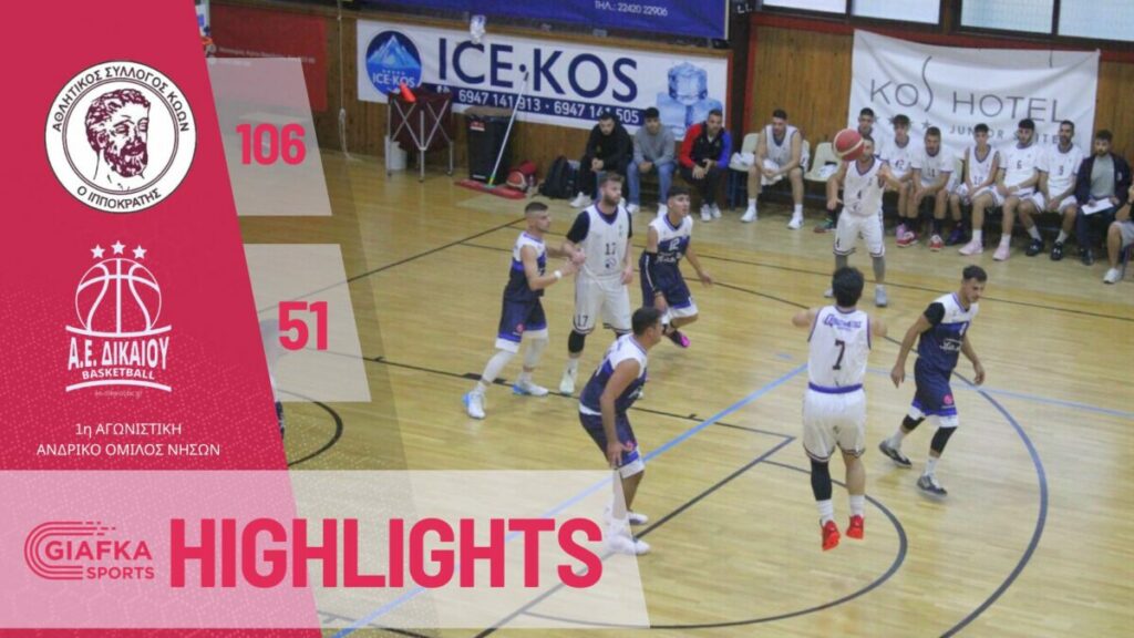 Για την 1η αγωνιστική του ανδρικού πρωταθλήματος ο Ιπποκράτης επικράτησε με 106-51 της Α.Ε Δικαίου. Δείτε τα highlights της αναμέτρησης απ’ το giafkasports.gr