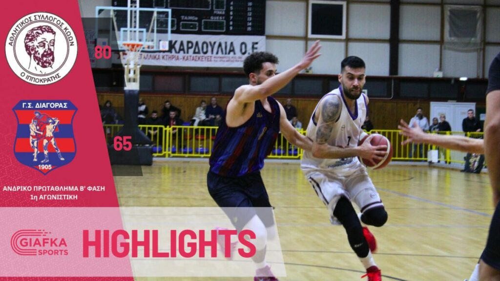 Για την πρεμιέρα της β’ φάσης του ανδρικού πρωταθλήματος ο Ιπποκράτης επικράτησε με 80-65 του Διαγόρα στο Κλειστό γυμναστήριο Κω «Δημήτρης Παππούλης». Δείτε τα highlights της αναμέτρησης απ’ το giafkasports.gr