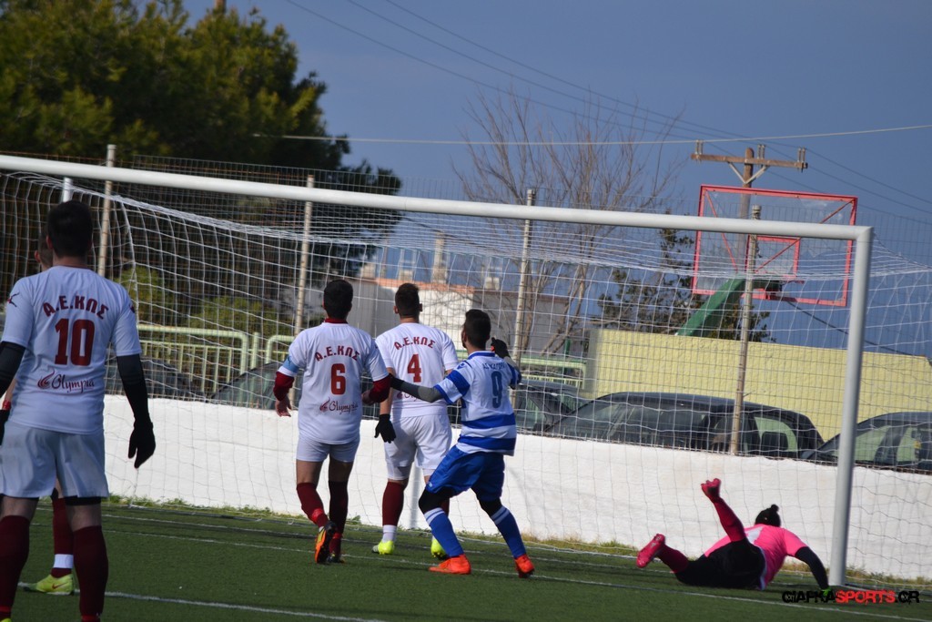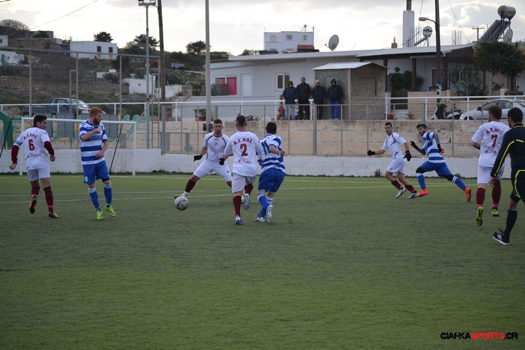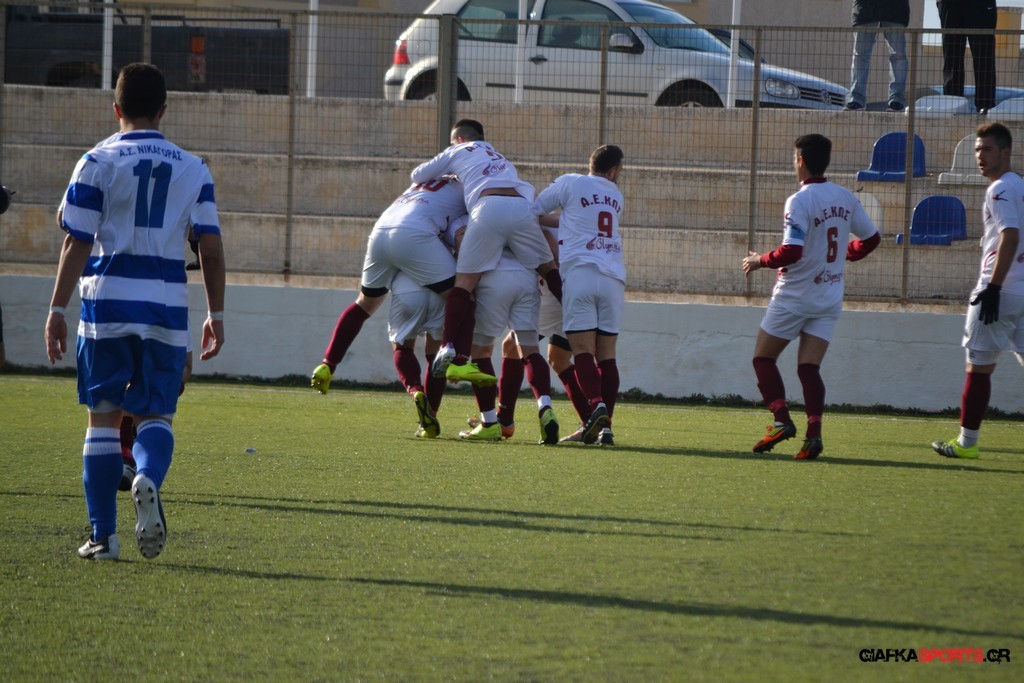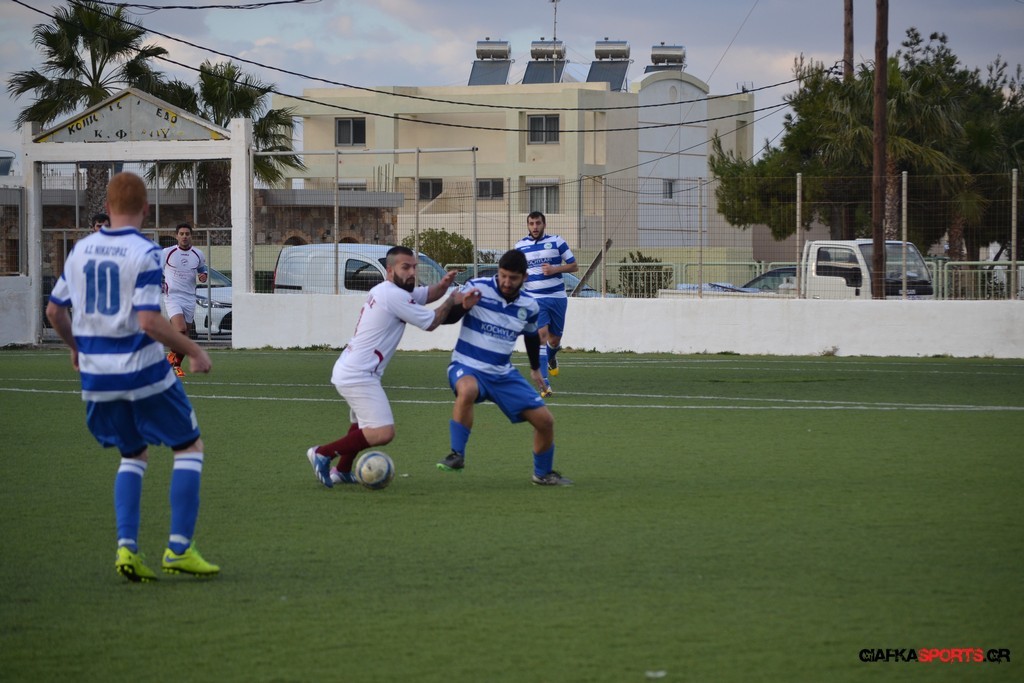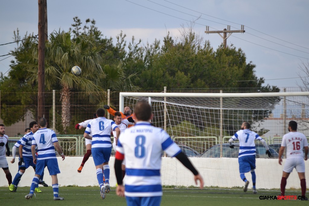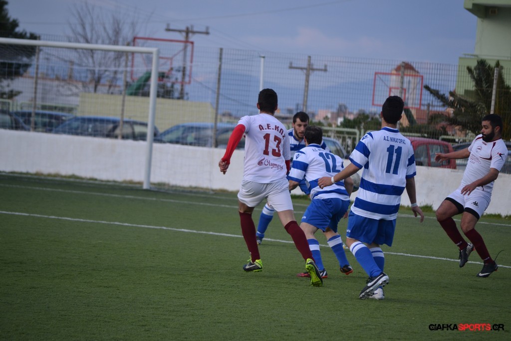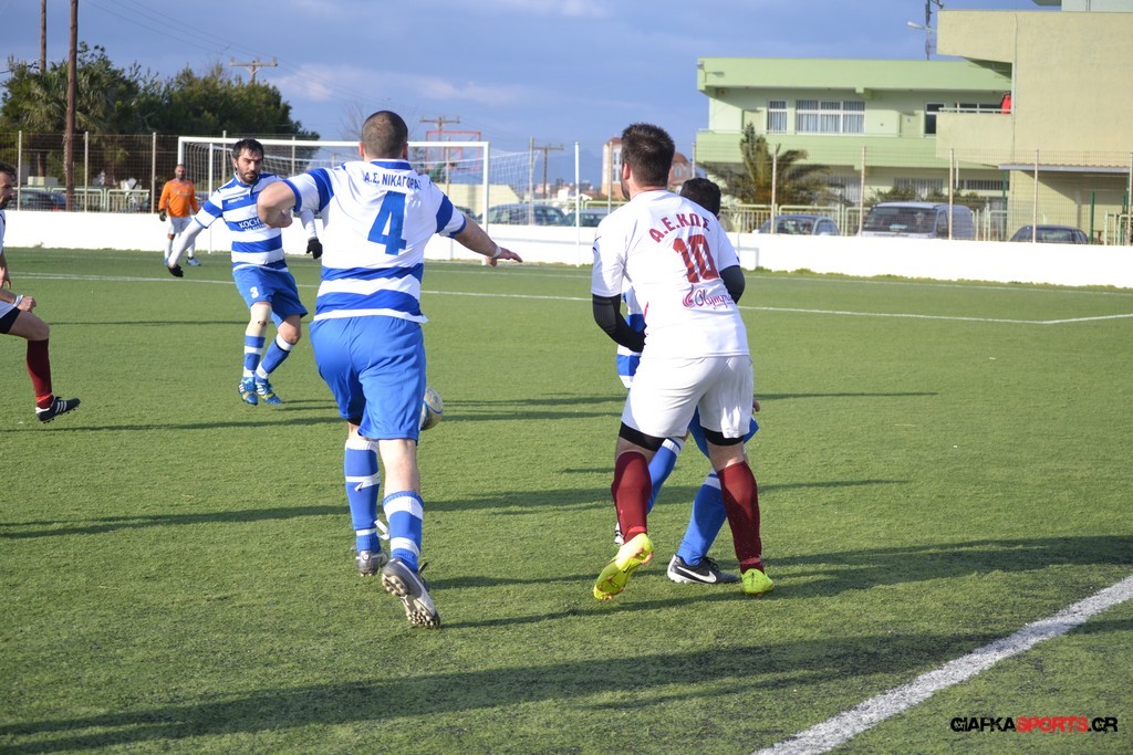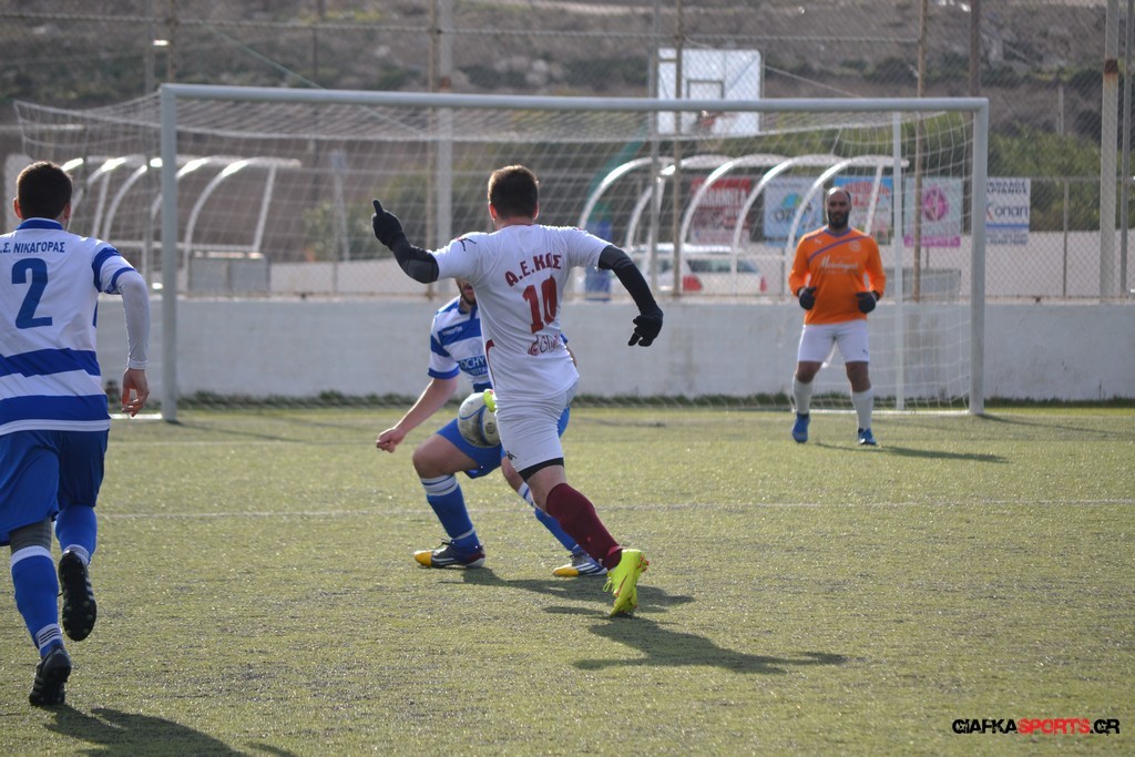 Μία εβδομάδα μετά την ήττα στην Καρδάμαινα ο Νικαγόρας υποχρέωσε σε βαριά ήττα την Α.Ε Κω (4-3) , την κράτησε 5 βαθμούς μακριά από την κορυφή δίνοντας παράλληλα δώρο στην Δόξα Καρδάμαινας (αν κερδίσει αύριο την Αναγέννηση στο Ζηπάρι) να ξεφύγει με 8 βαθμούς και να κάνει το πιο αποφασιστικό βήμα για τον τίτλο. Οι γηπεδούχοι παρόλο που αγωνίστηκαν χωρίς κανονικό τερματοφύλακα (Διακοδημητρίου και Δραμουντανής ήταν εκτός νησιού και έπαιξε κατ’ ανάγκη ο Διακογιάννης) ήταν ανώτεροι στην μεγαλύτερη διάρκεια του παιχνιδιού και επικράτησαν με 4-3. Φούσκας, Σκευοφύλαξ Ε., Ζερβός Ν., Κοκκαλάκης Γ. τα γκολ του Νικαγόρα ενώ για την Α.Ε Κω που έπαιζε από το 40’ με δέκα παίχτες (δεύτερη κίτρινη ο Κιολές) είχε ισοφαρίσει προσωρινά ο Κώστογλου με τον Ζαίμι με δύο γκολ στο τέλος να μειώνει σε 4-3.