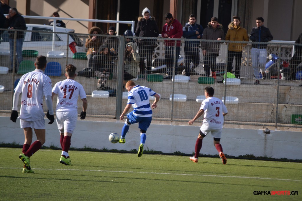 21′ Τεράστια ευκαιρία για την Α.Ε Κω, ο Ηλιάδης εκτέλεσε το πλάγιο από τα δεξιά, η μπάλα έφτασε στον Τζουμάκα το σουτ του οποίου κατέληξε στο αριστερό δοκάρι του Διακογιάννη και στην συνέχεια ο Ζερβός Μ. απομάκρυνε πριν στείλει ο Βασιλειάδης την μπάλα στα δίχτυα.