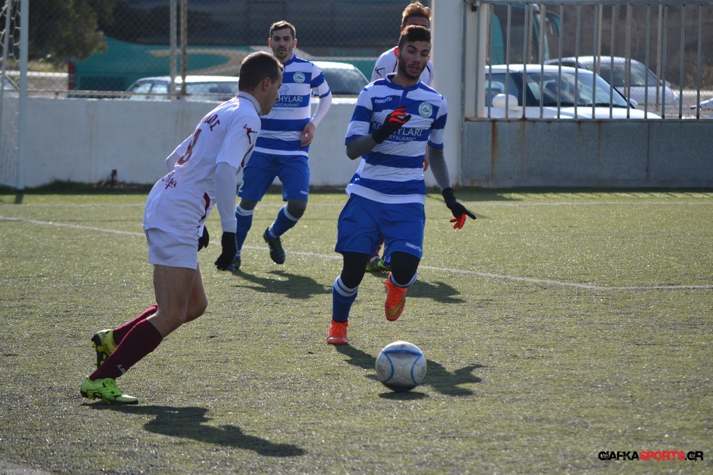 5′ Κάθετη μπαλιά του Μπίλλη Ι. στον Ζερβό Ν. ο οποίος κινήθηκε ωραία στην πλάτη της άμυνας, πέρασε τον Γκούτογλου αλλά το πλασέ του από πλάγια θέση πέρασε άουτ.