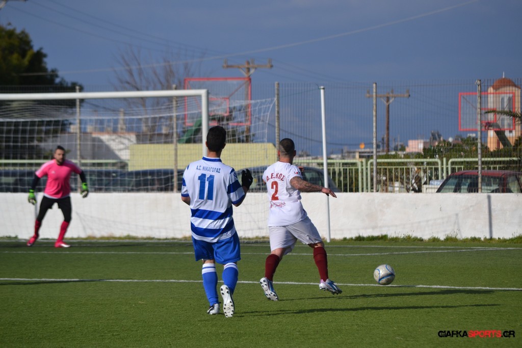 90′ Ωραία αντεπίθεση για τον Νικαγόρα, ο Ζερβός Ν. μπήκε από τα αριστερά έκανε την πάσα με τον Κοκκαλάκη Γ. να στέλνει την μπάλα στα δίχτυα και τον Φραγκιαδάκη μετά από υπόδειξη του Αλέκου να ακυρώνει το γκολ ως οφσάιντ.