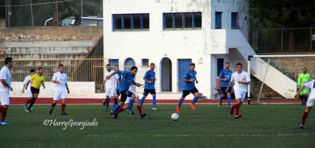 Οι φιλοξενούμενοι πάντως αποτέλεσαν έναν σκληροτράχηλο αντίπαλο που δυσκόλεψε σε όλη την διάρκεια της αναμέτρησης τους παίκτες του Κώστα Παπαδόπουλου. Στο ξεκίνημα τόσο του πρώτου, όσο και του δευτέρου ημιχρόνου, οι Καλύμνιοι, ήταν αυτοί που έλεγχαν το παιχνίδι και μάλιστα θα μπορούσαν να είχαν σκοράρει. Αξίζει να σημειωθεί ότι στο 5’ ο Κατσαρής με σουτ έστειλε τη μπάλα να χτυπήσει στο δοκάρι (κάθετο). Στο 80’ ο Κοτσίκος ανατράπηκε στην περιοχή και ο διαιτητές έδωσε πέναλτι το οποίο ανέλαβε να εκτελέσει ο Μπαϊρακτάρης αλλά η μπάλα χτύπησε στο οριζόντιο δοκάρι.