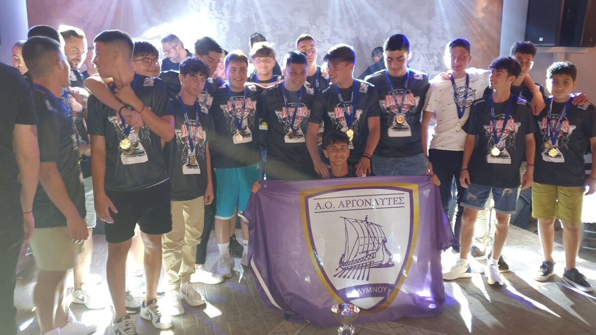 Σε μια όμορφη βραδιά στο Καστέλλι στην Κάλυμνο πραγματοποιήθηκε η φιέστα και παράλληλα η τελετή λήξης της φετινής χρονιάς της ομάδας των Αργοναυτών Καλύμνου που κατάφεραν να πάρουν το πρωτάθλημα στην Κ-16 του Ομίλου νήσων με 18/18 νίκες.