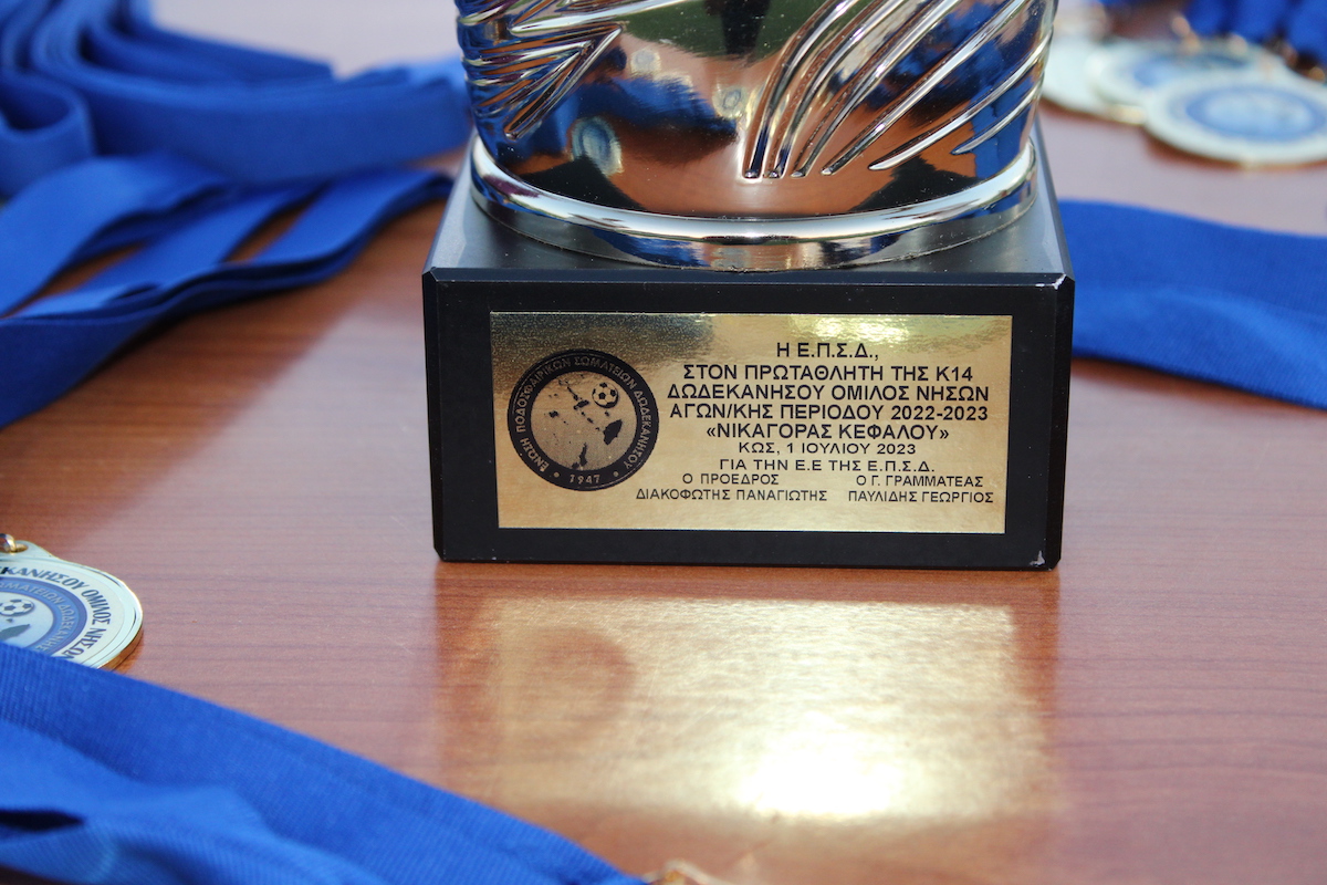 Πραγματοποιήθηκε το απόγευμα του Σαββάτου στο Δημοτικό γήπεδο Κεφάλου «Μιχάλης Πέρος» η απονομή του πρωταθλήματος στην Κ-14 του Ομίλου νήσων απ’ τον πρόεδρο της επιτροπής πρωταθλήματος της ΕΠΣ Δωδεκανήσου, Χρήστο Ψέλλα.