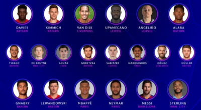 ΕΠΙΘΕΤΙΚΟΙ: Γκνάμπρι (Μπάγερν), Λεβαντόβσκι (Μπάγερν), Μπαπέ (Παρί Σεν Ζερμέν), Νεϊμάρ (Παρί Σεν Ζερμέν), Μέσι (Μπαρτσελόνα), Στέρλινγκ (Μάντσεστερ Σίτι).