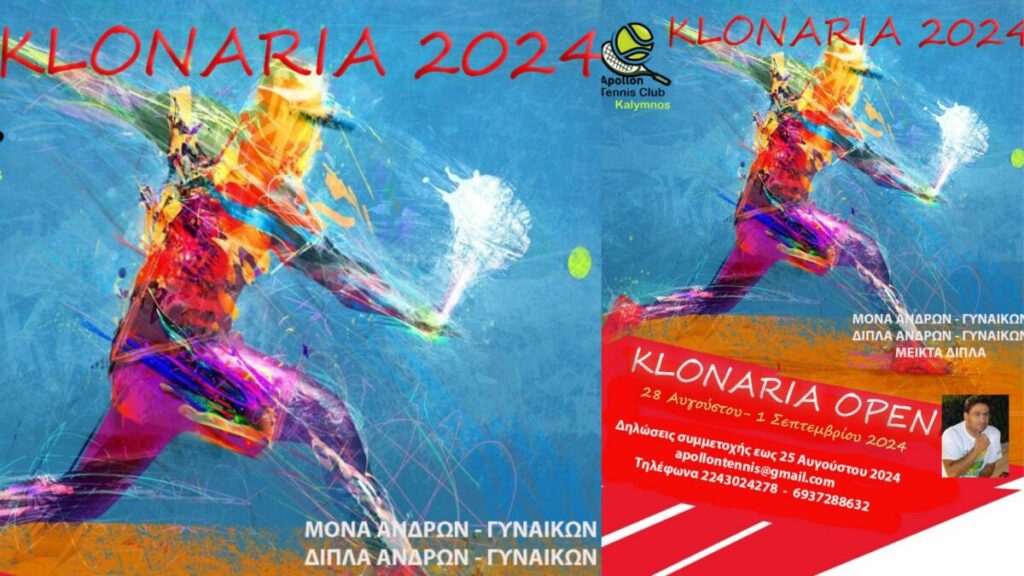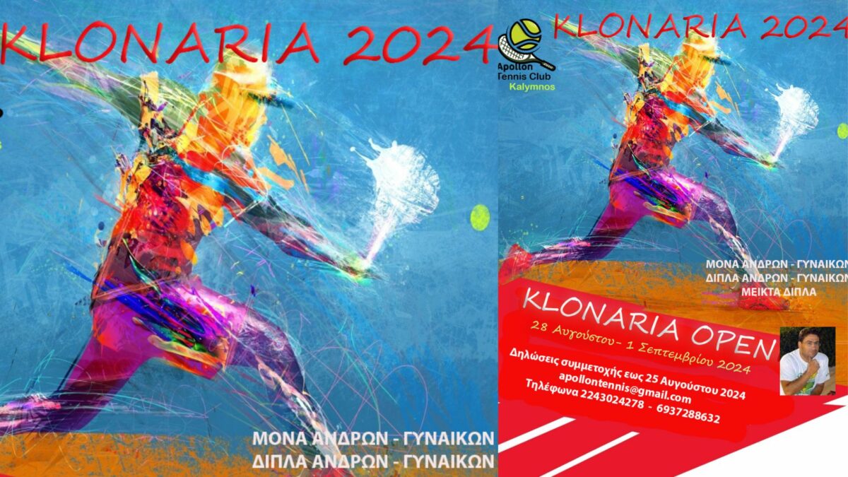 Από 28 Αυγούστου έως 1 Σεπτεμβρίου θα διεξαχθεί το τουρνουά «Κλωνάρεια 2024», με το διοργανωτή Όμιλο Αντισφαίρισης Καλύμνου να ανακοινώνει την προκήρυξη, στην οποία αναφέρονται τα εξής: ”Ο Όμιλος Αντισφαίρισης Καλύμνου προκηρύσσει το καθιερωμένο ετήσιο τουρνουά ‘’Κλωνάρεια 2024’’ εις μνήμη του Σακελλάρη Κλωνάρη, που θα διεξαχθεί στις εγκαταστάσεις του Ομίλου από την Τετάρτη 28 Αυγούστου έως την Κυριακή 1η Σεπτεμβρίου 2024 με πιθανότητα παράτασης έως Δευτέρα 2 Σεπτεμβρίου αναλόγως των συμμετοχών και του όγκου αγώνων, για τις παρακάτω κατηγορίες αγώνων: