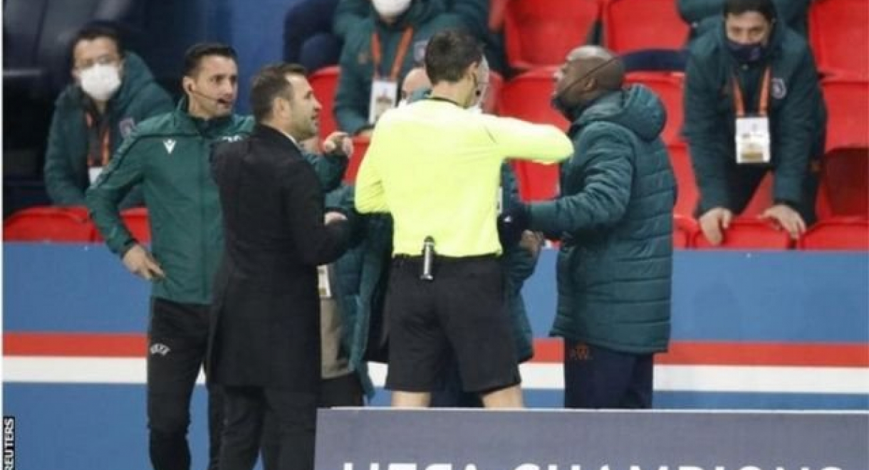 Ο τέταρτος διαιτητής αποκάλεσε “μαύρο” τον βοηθό προπονητή της Μπασακσεχίρ, εξοργίζοντας τους ανθρώπους της τουρκικής ομάδας, οι οποίοι έφυγαν αμέσως για τα αποδυτήρια, σε ένδειξη διαμαρτυρίας.