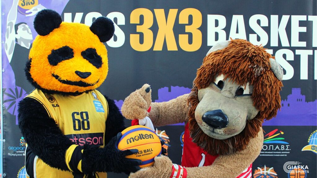 Με τρομερή διάθεση εμφανίστηκαν στο 6o KOS 3X3 Basketball Festival οι μασκότ του Ολυμπιακού και της ΑΕΚ, που έπαιξαν, χόρεψαν, σούταραν και έδωσαν την δυνατότητα σε αρκετούς φίλους τους μπάσκετ να φωτογραφηθούν μαζί τους.