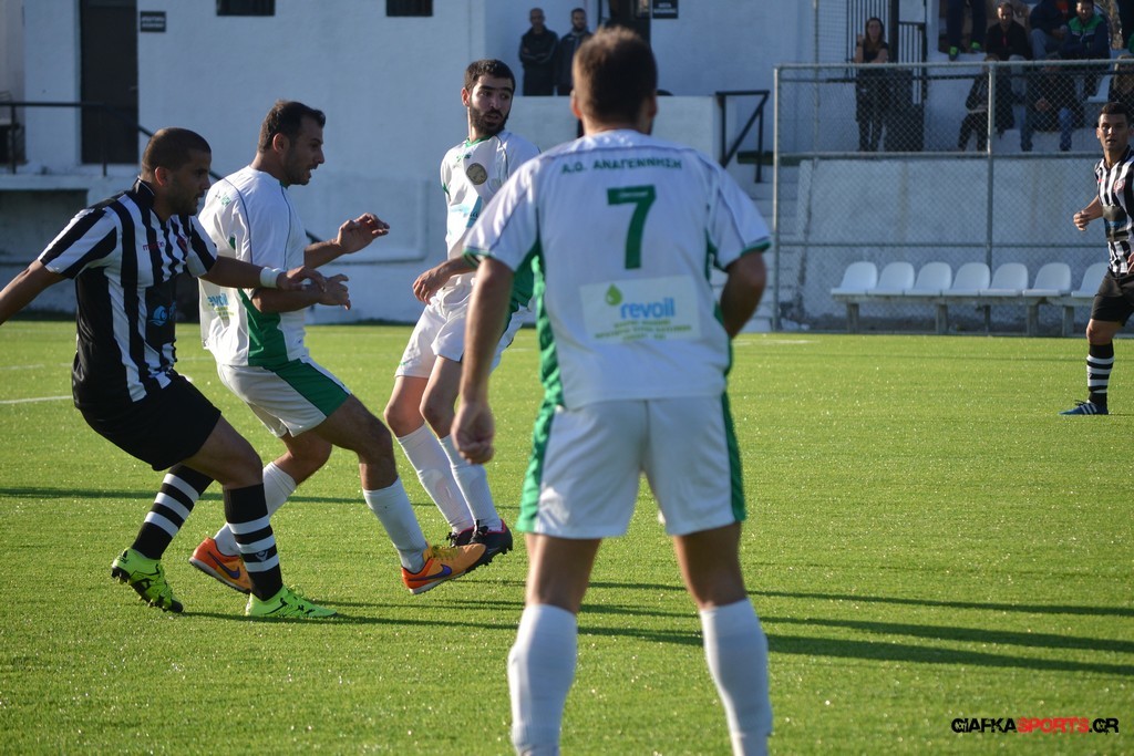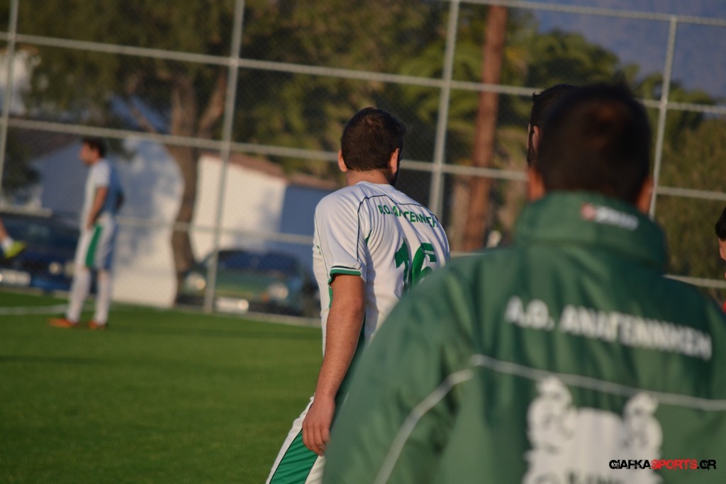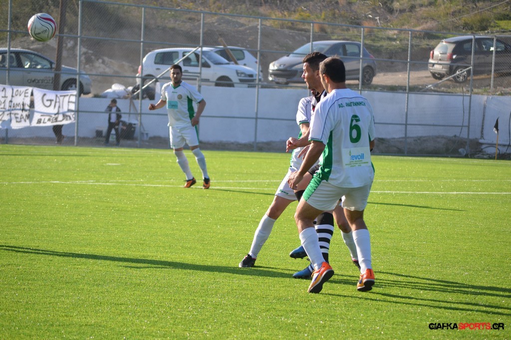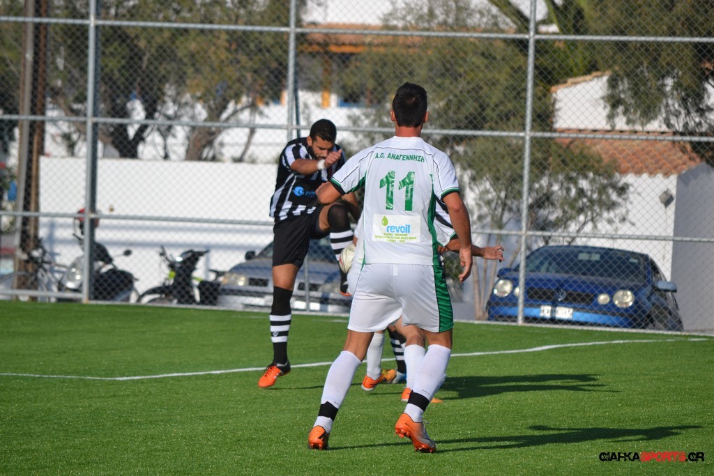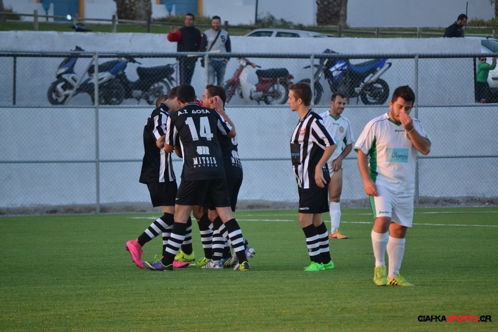 Έχοντας και τον αέρα με το μέρος της η Δόξα Καρδάμαινας ήταν αυτή που μπήκε πιο δυναμικά στο ματς και μόλις στο 7′ κατάφερε να πάρει κεφάλι στο σκορ,όταν ο Πανόπουλος εκτέλεσε το κόρνερ από τα αριστερά,η μπάλα έπειτα από τις γροθιές του Χατζηβασίλη κατέληξε στον Οχτάρα,ο οποίος με άψογο πλασέ έστειλε την μπάλα στο δεξί παραθυράκι της Αναγέννησης για το 1-0.