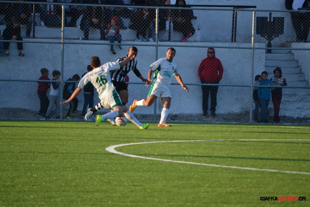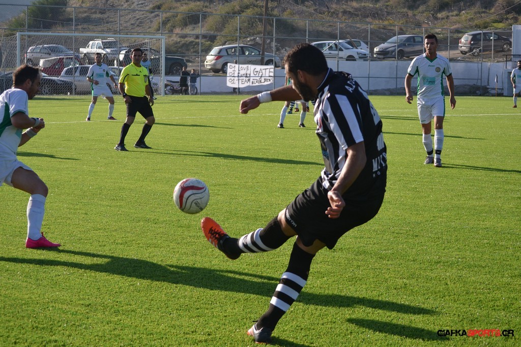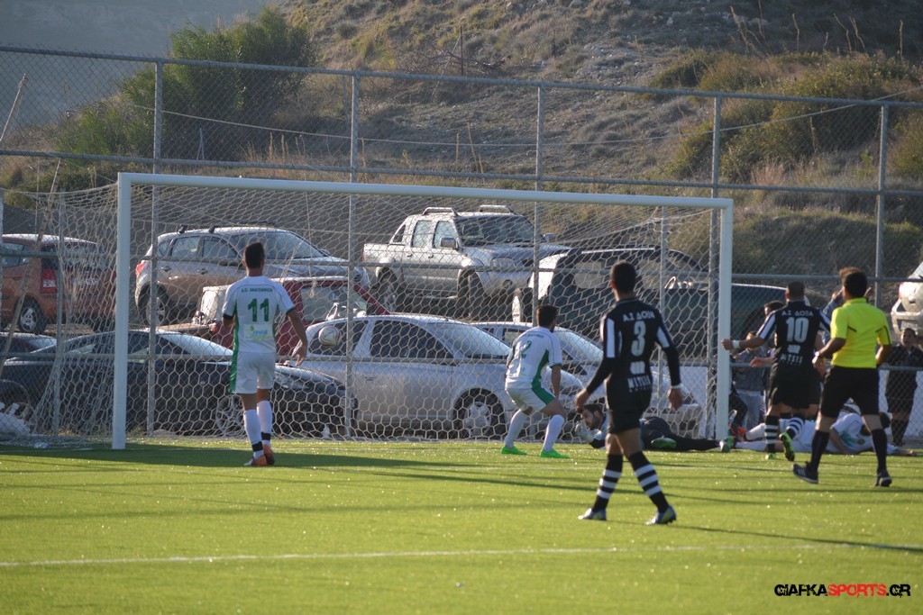 73′ Απευθείας εκτέλεση φάουλ από τον Πανόπουλο, η μπάλα πέρασε λίγο έξω από το οριζόντιο δοκάρι του Χατζηβασίλη.