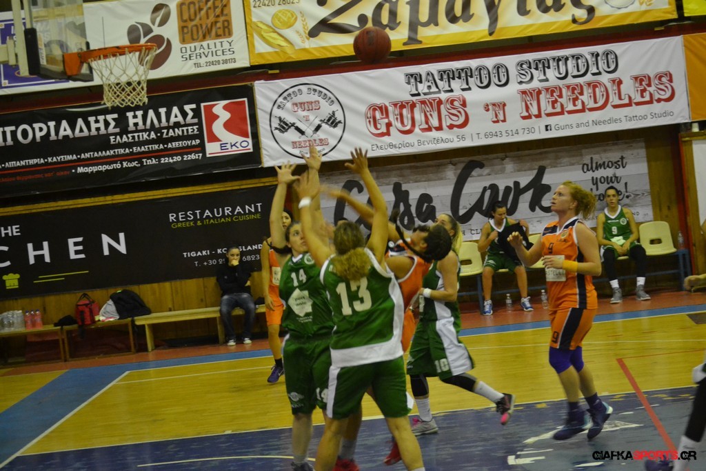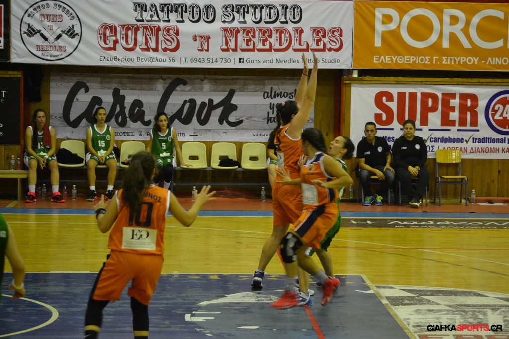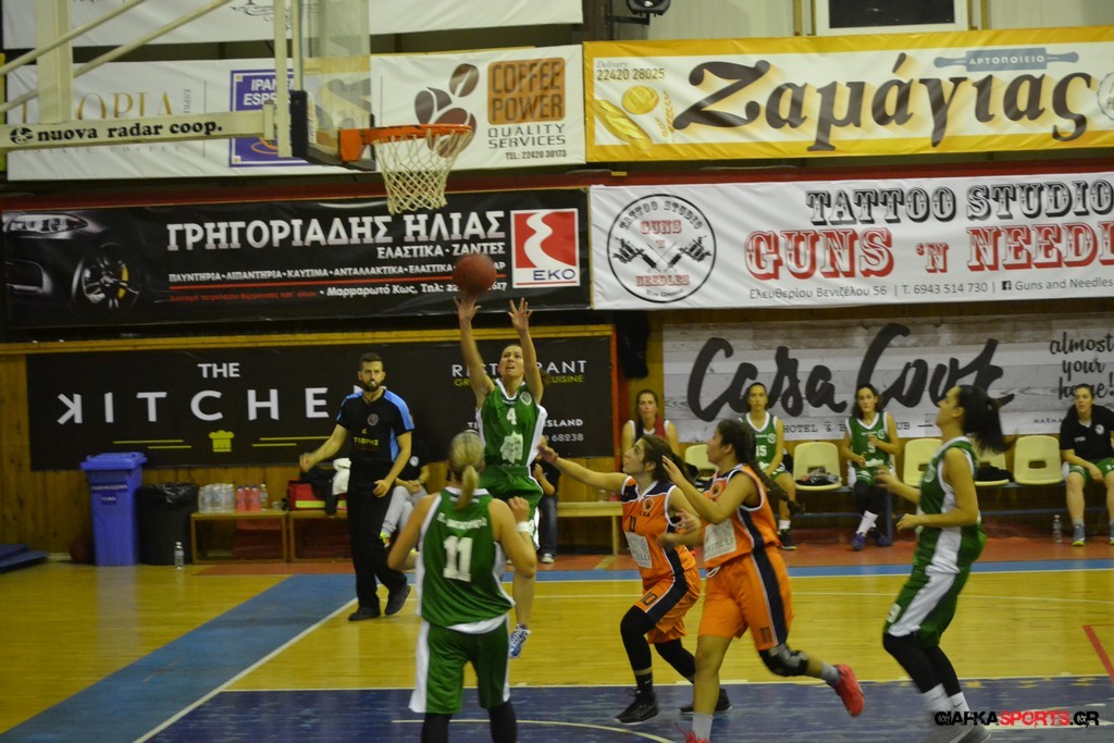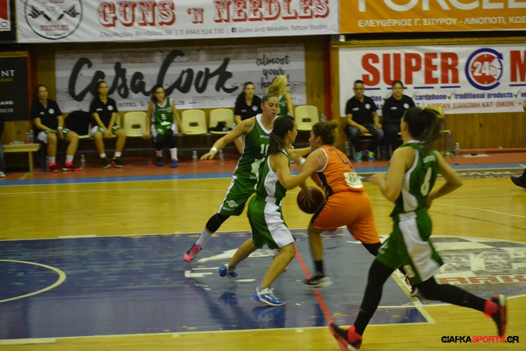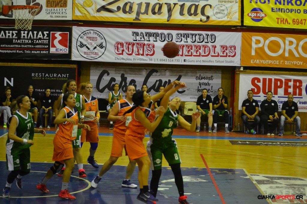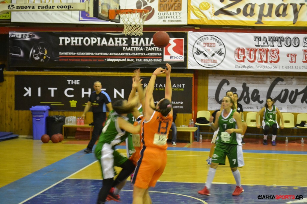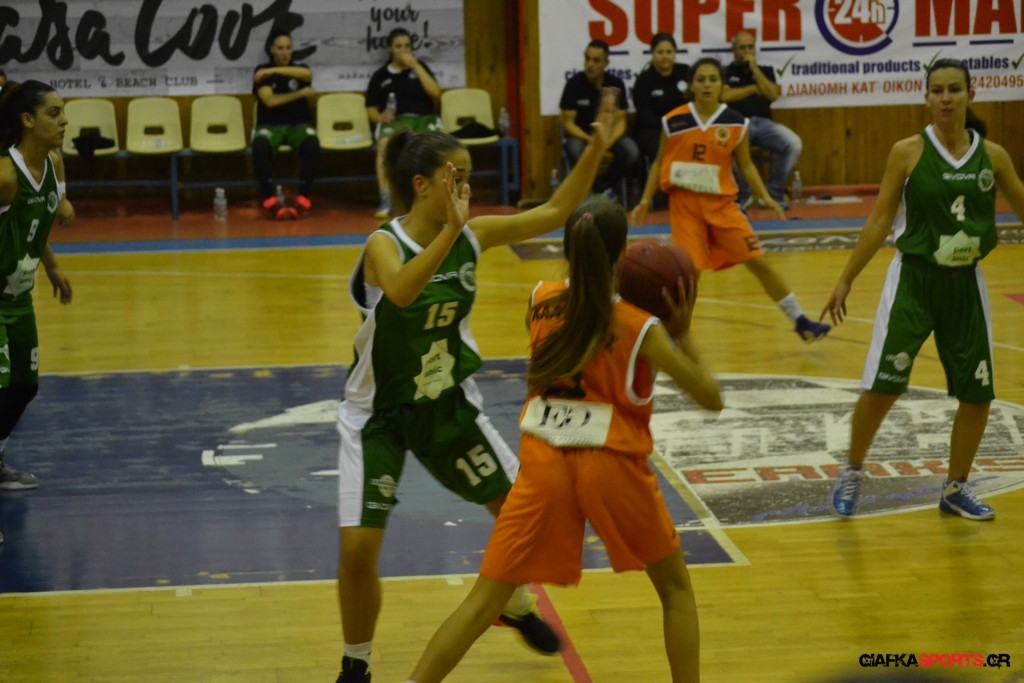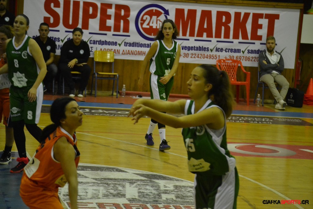 Στο δεύτερο μέρος μάλιστα με όπλο της καλή τους άμυνα (δέχτηκαν μόλις δύο πόντους) και με πολυφωνία στην επίθεση, και ιδιαίτερα θετική τη νεαρή Στέλλα Κουζούκα κατάφεραν να ανεβάσουν και άλλο την διαφορά και να επικρατήσουν τελικά με 59-14.