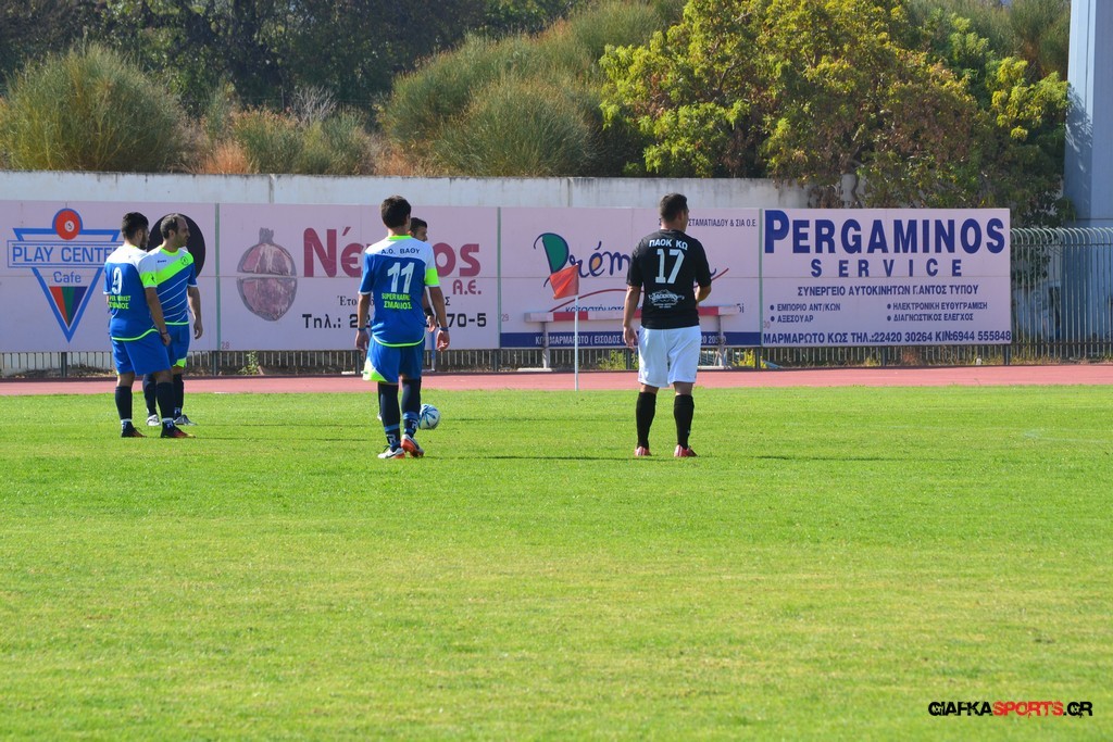 Την πρώτη του νίκη για το φετινό πρωτάθλημα πέτυχε ο ΠΑΟΚ Κω στο πρώτο του παιχνίδι για φέτος (είχε αναβληθεί το ΑΕΛ – ΠΑΟΚ Κω) επικρατώντας με 3-0 του Α.Ο Βαθύ για την δεύτερη αγωνιστική της Β’ κατηγορίας του Ομίλου νήσων. Χιούσι, Στεργαλάς και Τσακάλης τα γκολ για την ομάδα του Στάθη Γκουντελίτσα που είχε και δύο δοκάρια. Πριν την έναρξη του αγώνα κρατήθηκε ενός λεπτού σιγή στην μνήμη της μητέρας του προπονητή του ΠΑΟΚ Κω που έφυγε πριν περίπου μια εβδομάδα απ’ την ζωή.