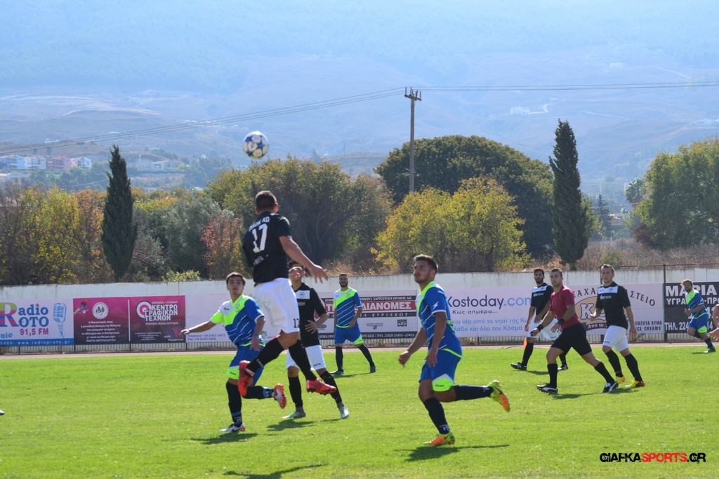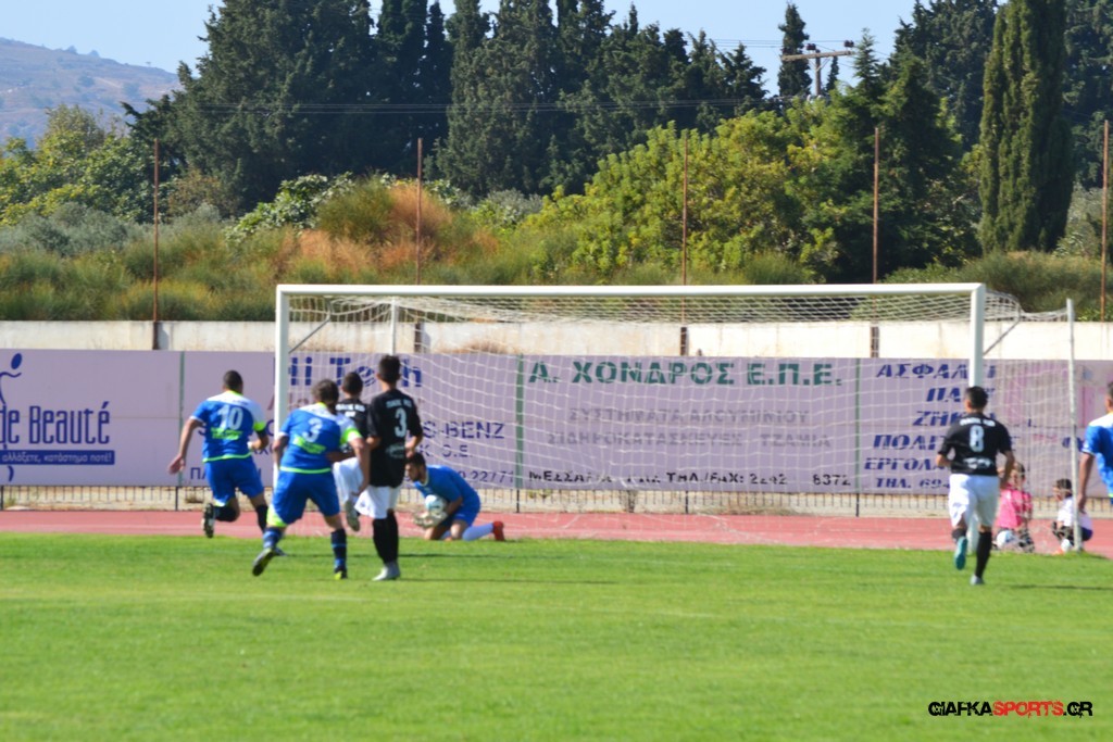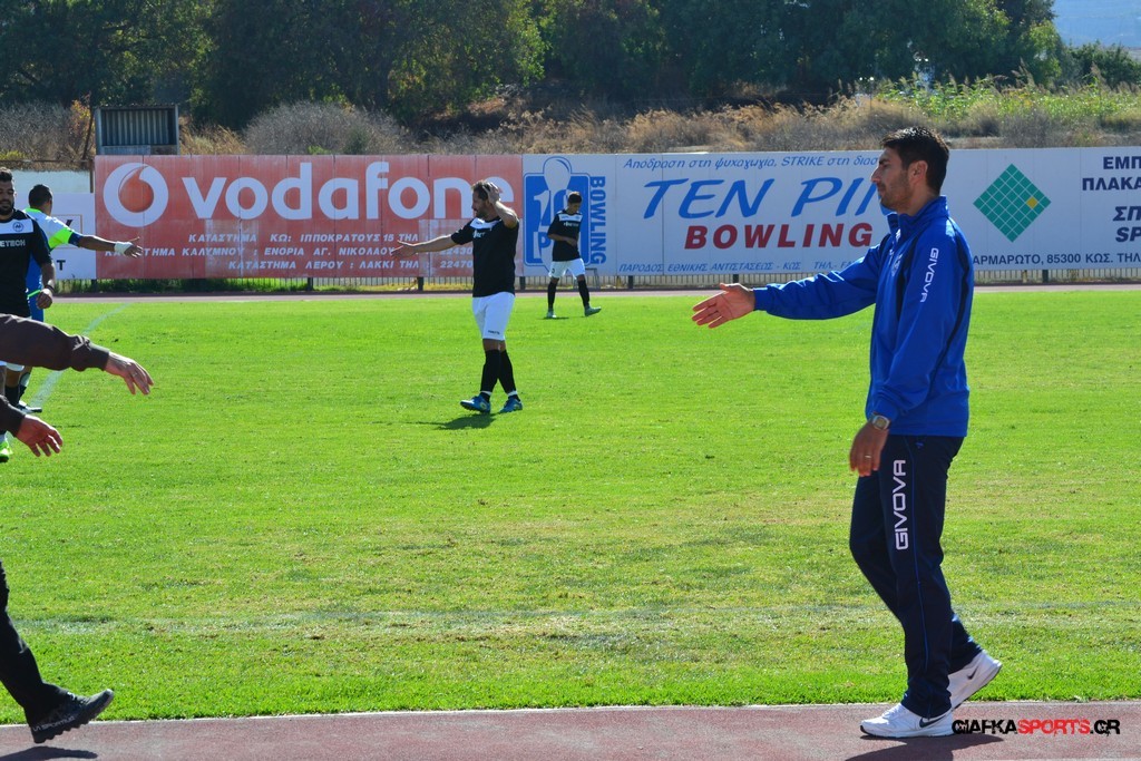 Οι γηπεδούχοι ήταν αυτοί που ανέλαβαν την πρωτοβουλία των κινήσεων απ’ την αρχή του αγώνα και προσπάθησαν απ’ τα πλάγια να πατήσουν περιοχή. Μάλιστα στο 15′ είχαν μεγάλη ευκαιρία να προηγηθούν, όταν το σουτ του Σιουλά μέσα απ’ την περιοχή κόντραρε στους αμυντικούς και σταμάτησε στο αριστερό δοκάρι του Μελά. Η ομάδα του Νικόλα Γιαμαίου έψαχνε στην κόντρα την στιγμή για να απειλήσει και στο 20′ ο Αντώνης Καμπουράκης βρέθηκε απέναντι απ’ τον Κονταντώνη αλλά ο τερματοφύλακας του ΠΑΟΚ Κω βγήκε γρήγορα και τον σταμάτησε.