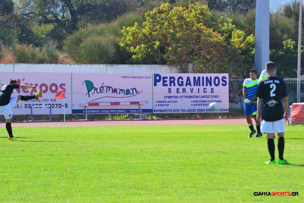 Μάλιστα ο ΠΑΟΚ Κω μετά το γκολ είχε άλλες δυο κλασικές ευκαιρίες για να πετύχει και άλλο τέρμα με τον Μικέ Ξυπολιτά να κάνει ωραία ενέργεια μέσα στην περιοχή και τον Μελά να αποκρούει και τον Καΐσερλη να σουτάρει από πλάγια και να τραντάζει το οριζόντιο δοκάρι.