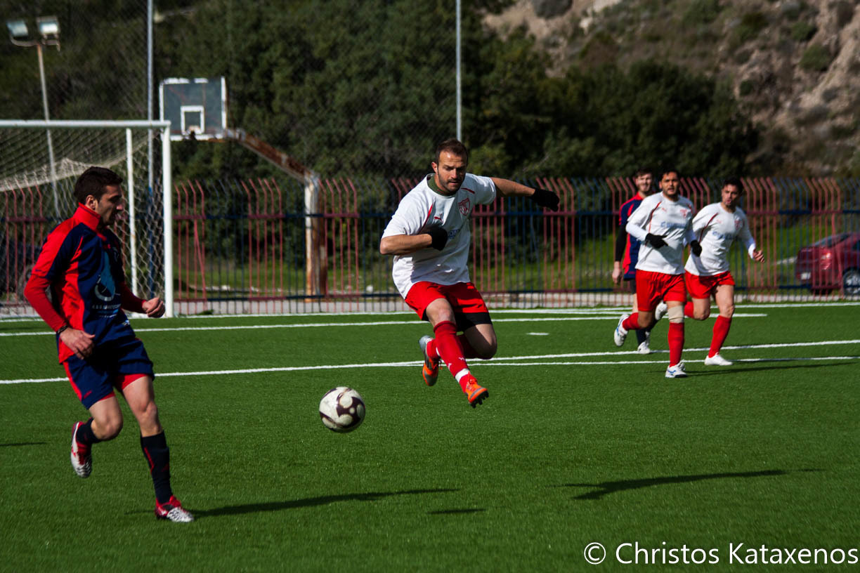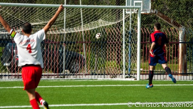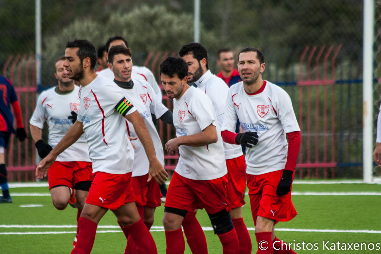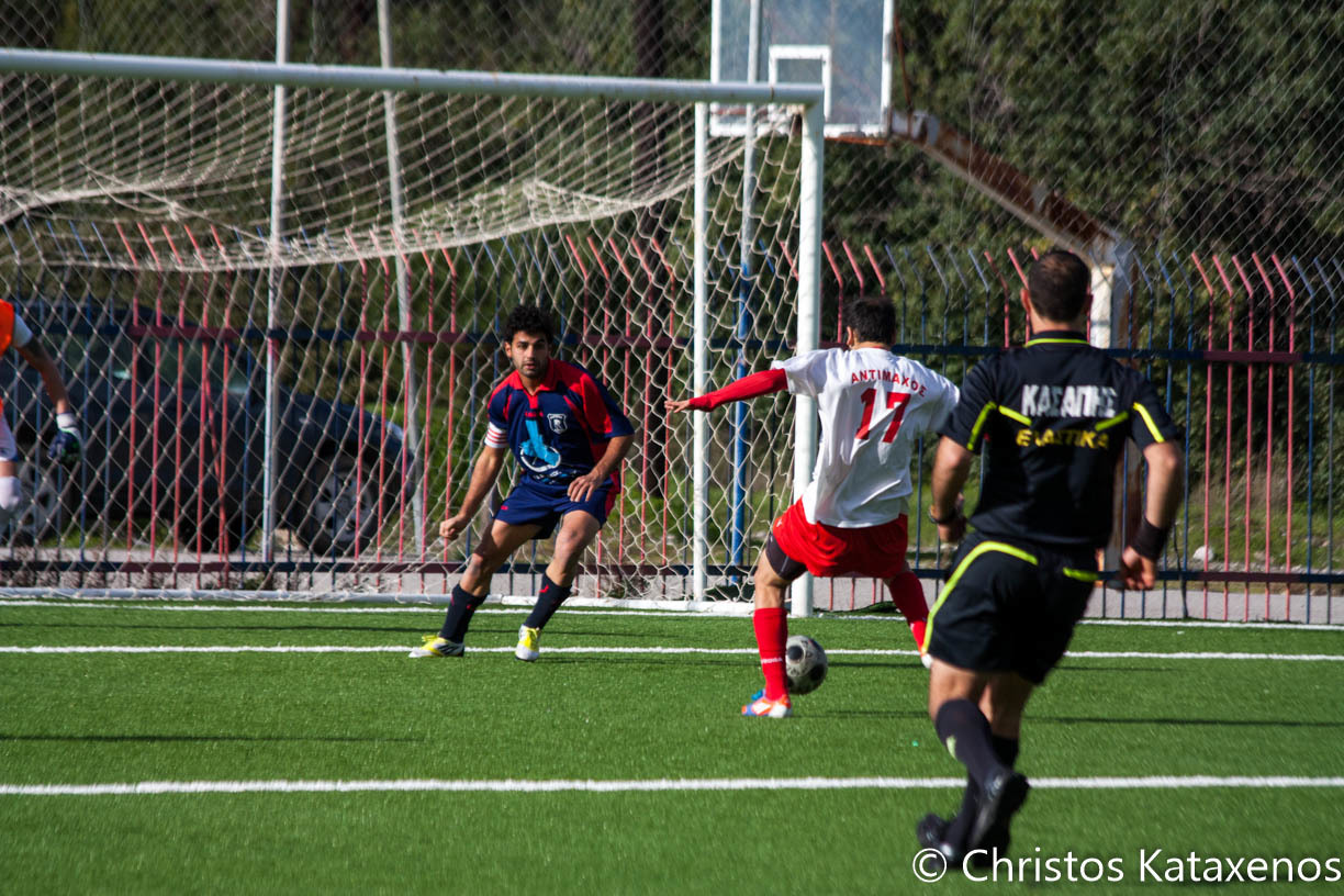 Ο Αντίμαχος πάντως κατάφερε να απαντήσει άμεσα αφού μόλις τρία λεπτά αργότερα ο Ζερβός με απευθείας εκτέλεση φάουλ και αφού η μπάλα κόντραρε στα σώματα ισοφάρισε για τον Αντίμαχο κάνοντας το 1-1 που ήταν και το αποτέλεσμα του πρώτου ημιχρόνου.