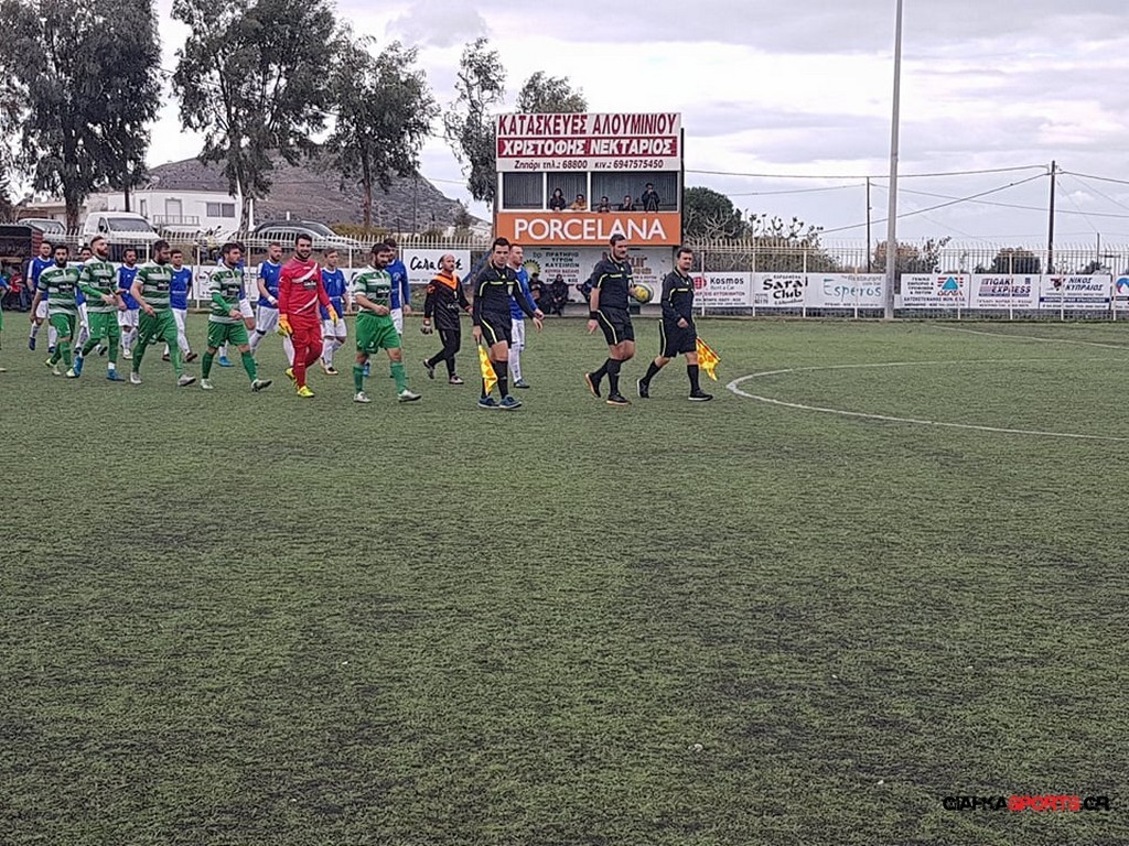 Οι γηπεδούχοι ήταν καλύτεροι στο ξεκίνημα, είχαν υπέρ τους τον αέρα και προσπάθησαν απ’ τα πλάγια να απειλήσουν. Στο 20ο λεπτό μάλιστα σε μια ωραία αντεπίθεση ο Κοτσάνης δεν κατάφερε να απομακρύνει και ο Γιάννης Κεφαλιανός με δυνατό διαγώνιο σουτ έκανε το 1-0 για την ομάδα του.
