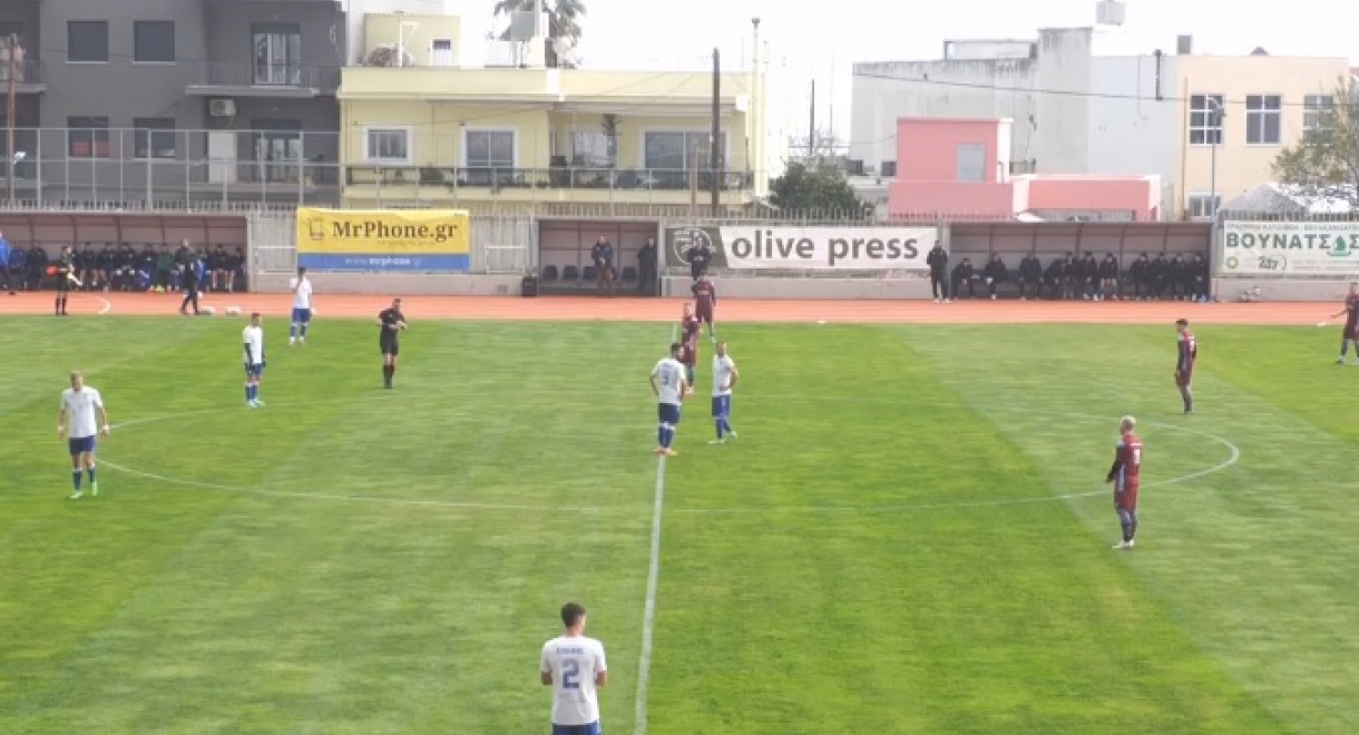 Στο πρώτο μέρος ο Αιολικός είχε πλήρη υπεροχή χωρίς όμως να δημιουργήσει κλασσική ευκαιρία, με καλύτερες στιγμές να καταγράφονται τα σουτ των Κανελλόπουλου και Στεφάνοβιτς στο 40′ και 45′ αντίστοιχα, ενώ οι γηπεδούχοι ζήτησαν και ένα πέναλτι σε μαρκάρισμα του Αποστολόπουλου με τον διαιτητή να δείχνει τη συνέχεια του αγώνα.