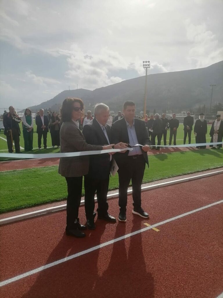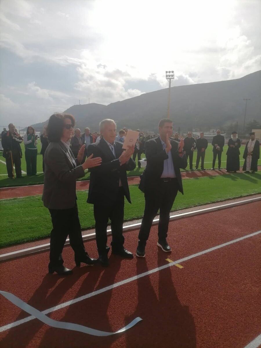 Ακολούθησαν από την Ελένη Σεβαστή και το Δήμαρχο Δ.Διακομιχάλη τα αποκαλυπτήρια της πινακίδας που τοποθετήθηκε στην είσοδο του γηπέδου, που είχε καλυφθεί με την Ελληνική σημαία. Την Ελληνική σημαία έδωσε στη συνέχεια ο Δήμαρχος Δ.Διακομιχάλης στην οικογένεια του Βασίλη Σεβαστή ως ενθύμιο.