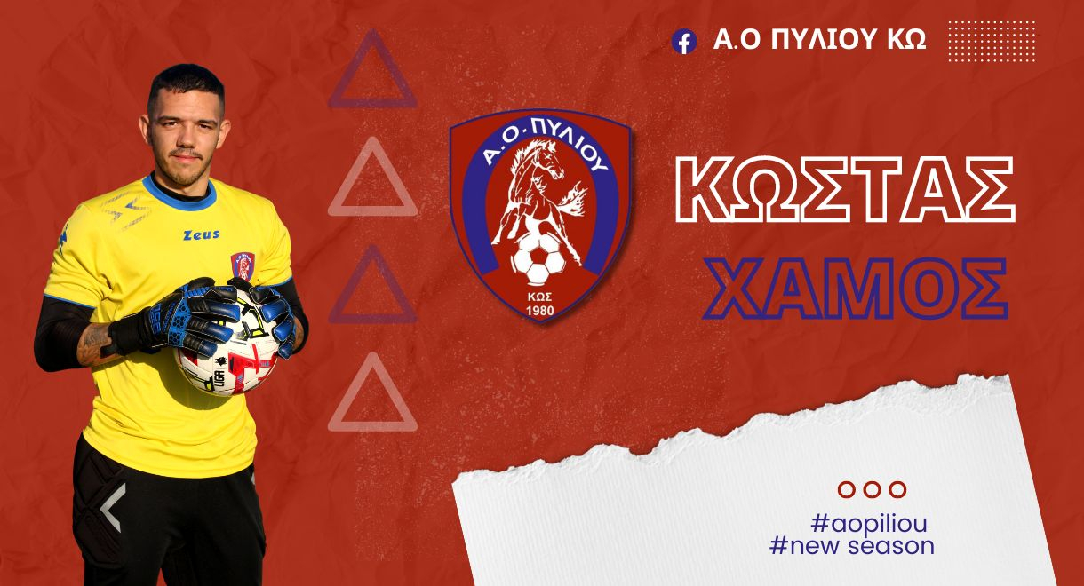 «Ο Α.Ο Πυλίου Κω ανακοινώνει και επίσημα την απόκτηση του Κωνσταντίνου Χάμου για την αγωνιστική περίοδο 2022- 2023. Ο 25χρονος τερματοφύλακας ξεκίνησε το ποδόσφαιρο στην Ακαδημία «Προμηθέας» και στη συνέχεια έπαιξε στους Έλαφο Αγιάς, Ανθούπολη, Σμόλικα Φαλάνης, Δόξα Βλαχογιαννίου, Αχιλλέα Φαρσάλων, Αστέρα Ιτέας, Άνω Μερά Μυκόνου, Διαγόρα Στεφανοβικείου και Μολαϊκό. Την περσινή σεζόν στέφθηκε πρωταθλητής στην Γ’ Εθνική με την ομάδα του Ηρακλή Λάρισας. Τον καλωσορίζουμε και του ευχόμαστε μια σεζόν χωρίς τραυματισμούς και επιτυχίες»