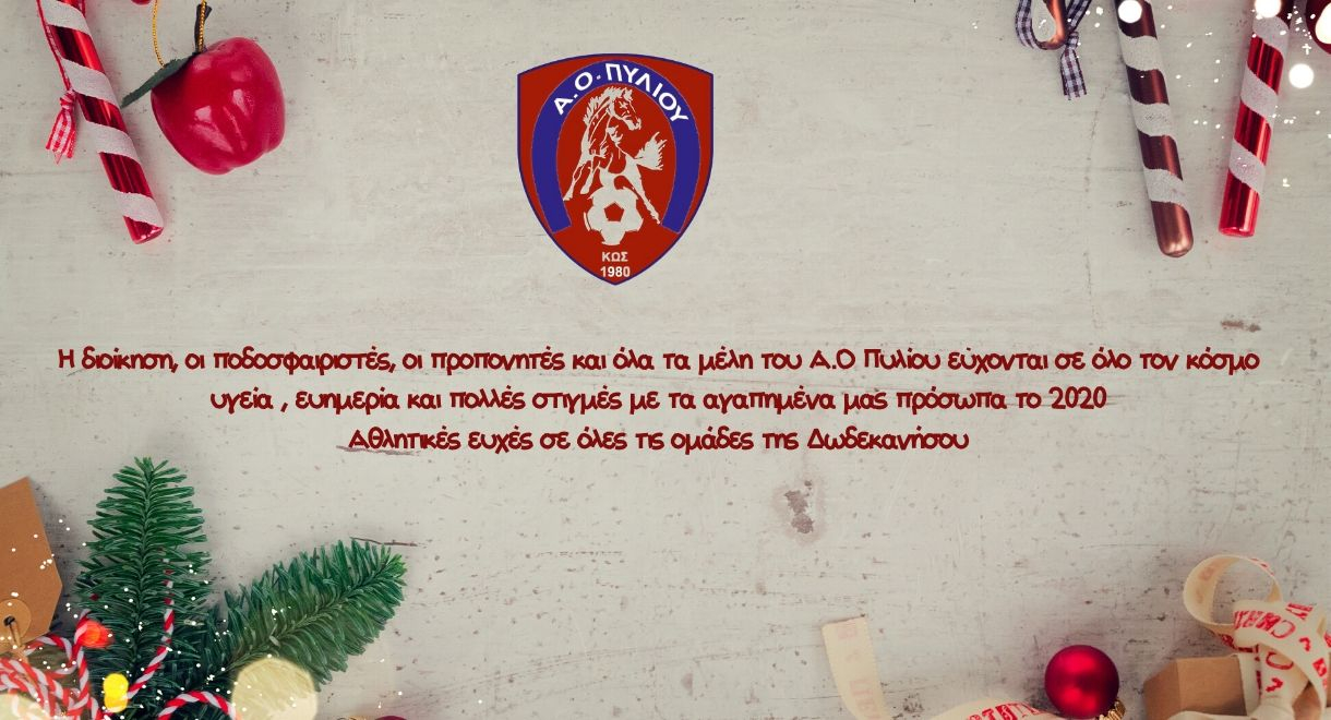 Η διοίκηση, οι ποδοσφαιριστές, οι προπονητές και όλα τα μέλη του Α.Ο Πυλίου εύχονται σε όλο τον κόσμο υγεία , ευημερία και πολλές στιγμές με τα αγαπημένα μας πρόσωπα το 2020