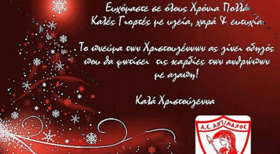 Ευχόμαστε σε όλους χρόνια πολλά, καλές γιορτές με υγεία χαρά και ευτυχία. Το πνεύμα των Χριστουγέννων ας γίνει οδηγός που θα φωτίσει τις καρδιές του ανθρώπου με αγάπη. Καλά Χριστούγεννα