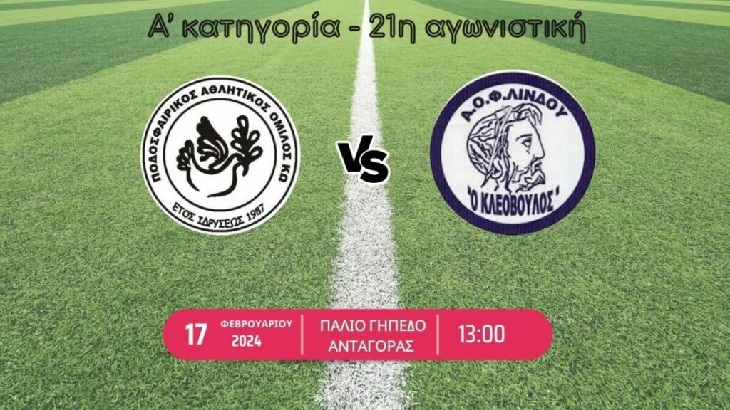 1.Να προσκαλέσουμε όλο το φίλαθλο κοινό της Κω στον σημαντικό εντός έδρας αγώνα της ομάδος μας στο παλιό Στάδιο Ανταγόρας το Σάββατο 17 Φεβρουαρίου και ώρα 1.00μ με τον Κλεόβουλο Λίνδου Ρόδου!