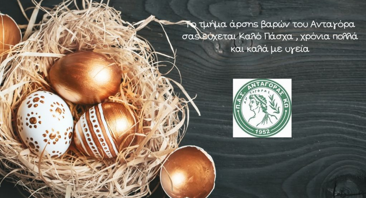 Το τμήμα της άρσης βαρών του Ανταγόρα εύχεται σε όλο τον κόσμο υγεία. Καλό Πάσχα και Καλή Ανάσταση σε όλους μας.
