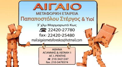 Και η μεταφορική εταιρεία Αιγαίο – Παπαποστόλου Στέργος & Υιοί στηρίζουν την φετινή προσπάθεια του giafkasports.gr με τις τηλεοπτικές εκπομπές.