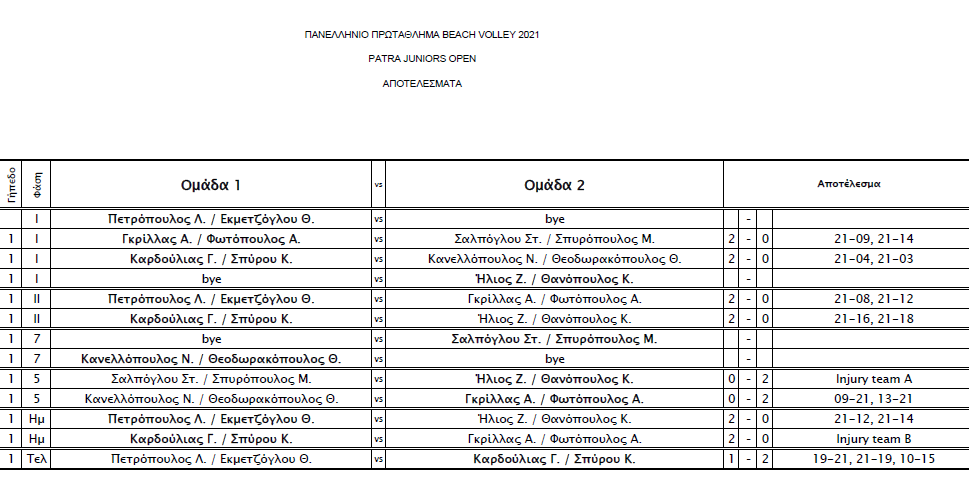 Αναλυτικά τα αποτελέσματα και οι τελικές κατατάξεις του PATRA BEACH HOUSE ERREA JUNIORS OPEN: