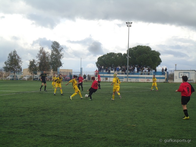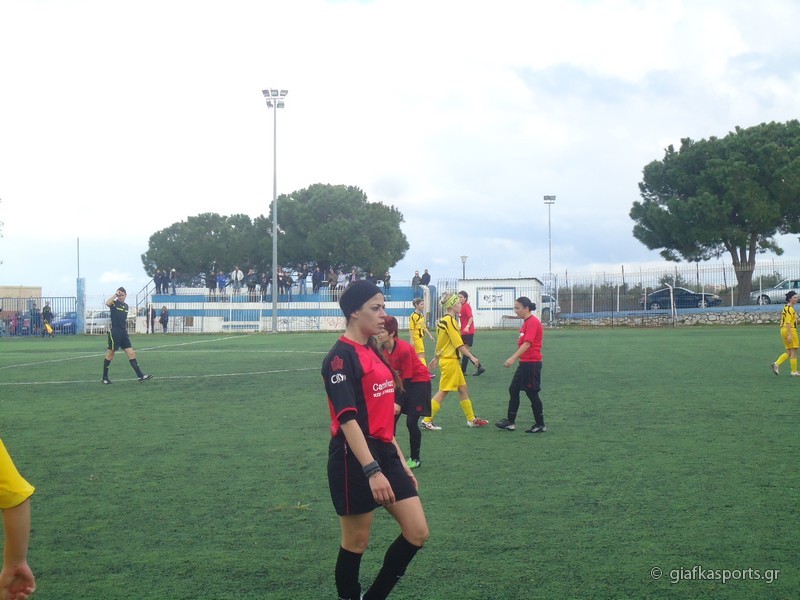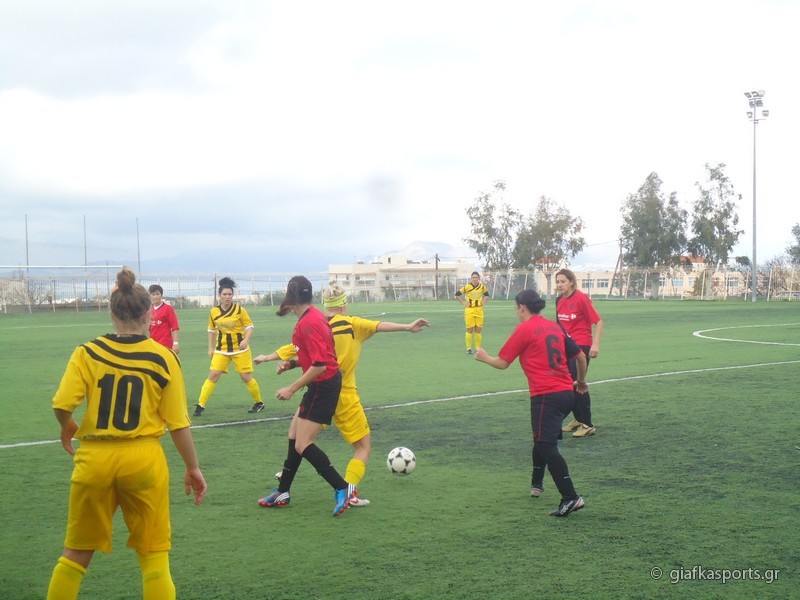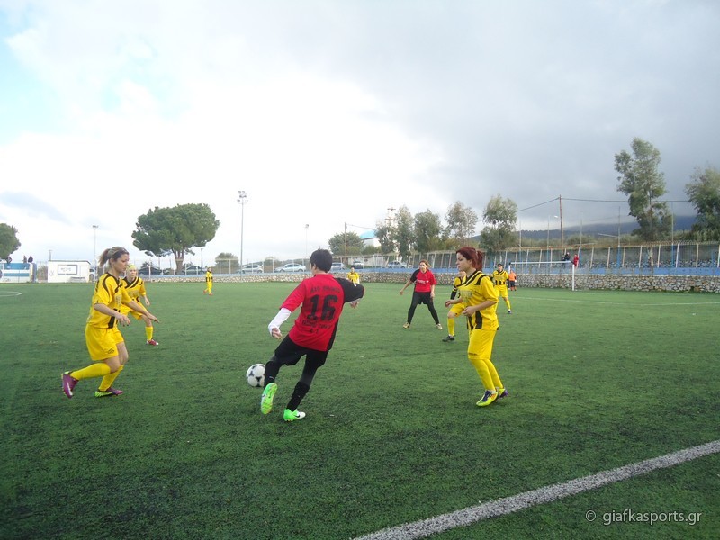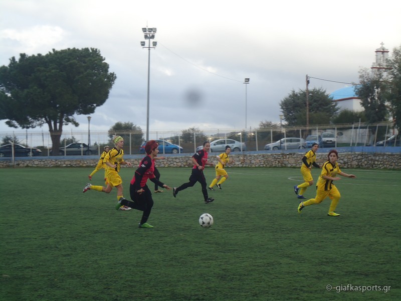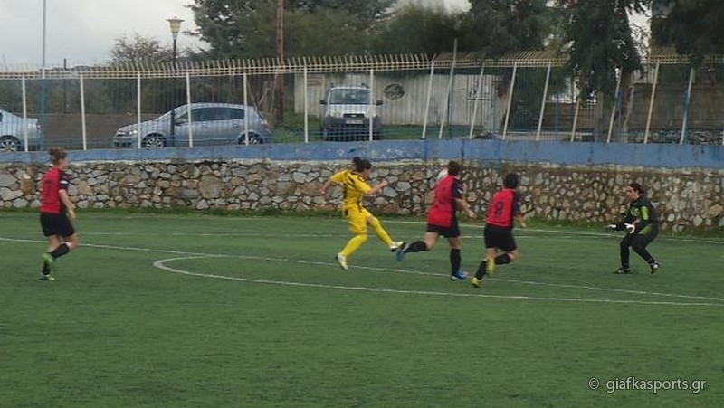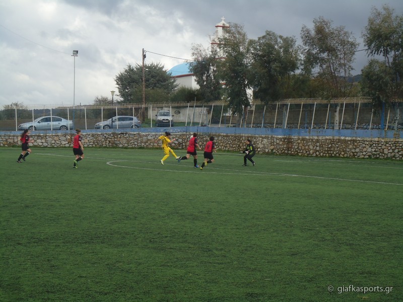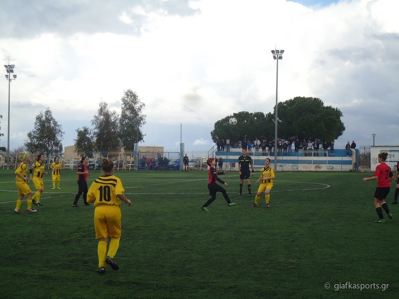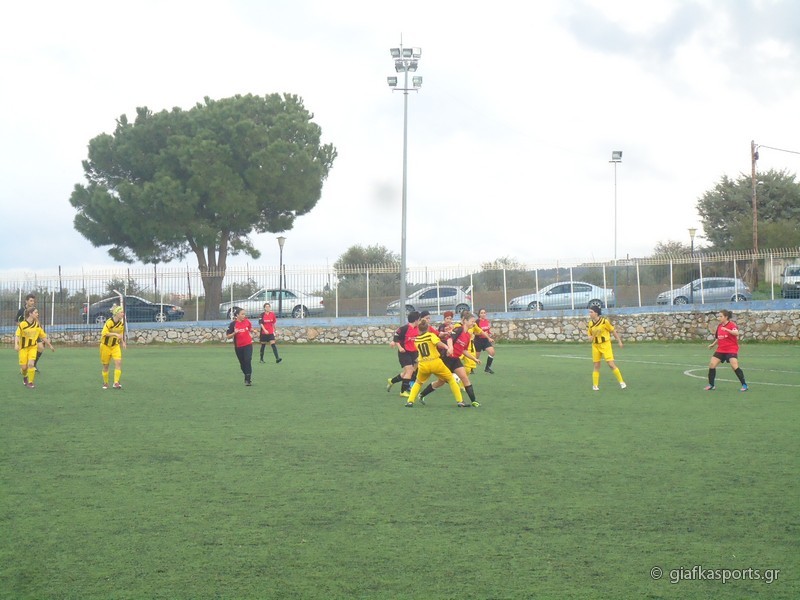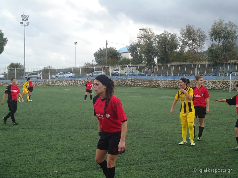 Με την συμπλήρωση μισής ώρας παιχνιδιού οι φιλοξενούμενες πήραν προβάδισμα στο σκορ όταν η Φράγκου βρέθηκε απέναντι απ’ τον Χοχλαστού με όμορφο ψηλοκρεμαστό πλασέ έκανε το 0-1 που ήταν και το αποτέλεσμα του πρώτου ημιχρόνου.