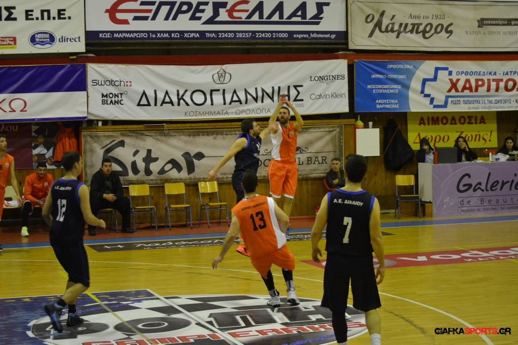 «Καθάρισε» και η Α.Ε. Δικαίου… Η ομάδα του Δημήτρη Τζομάκα έτρεχε με… 98 και κέρδισε με 98-64 τον Αίολο Κεφάλου, κάνοντας το sweep και παίρνοντας το εισιτήριο της πρόκρισης για το φάιναλ-φορ της Κω (25-26 Απριλίου). Χωρίς τον Γιώργο Χατζηγιακουμή στο ρόστερ της, η Α.Ε.Δ. δυσκολεύτηκε μόνο στο α’ δεκάλεπτο (21-19), αλλά στη συνέχεια ανέβασε την απόδοση της και με κορυφαίους σκόρερ τους Τριτσάρη, Τρύπα, Γεωργαδάκη και Τσατσούλη, έφτασε άνετα στη νίκη, κάνοντας το 2-0 κόντρα στην ομάδα του Δημήτρη Μαράγκα. Ο Αίολος δεν μπόρεσε να ακολουθήσει το ρυθμό της καλύτερης Α.Ε.Δ. και μοιραία γνώρισε την ήττα με διαφορά 34 πόντων…