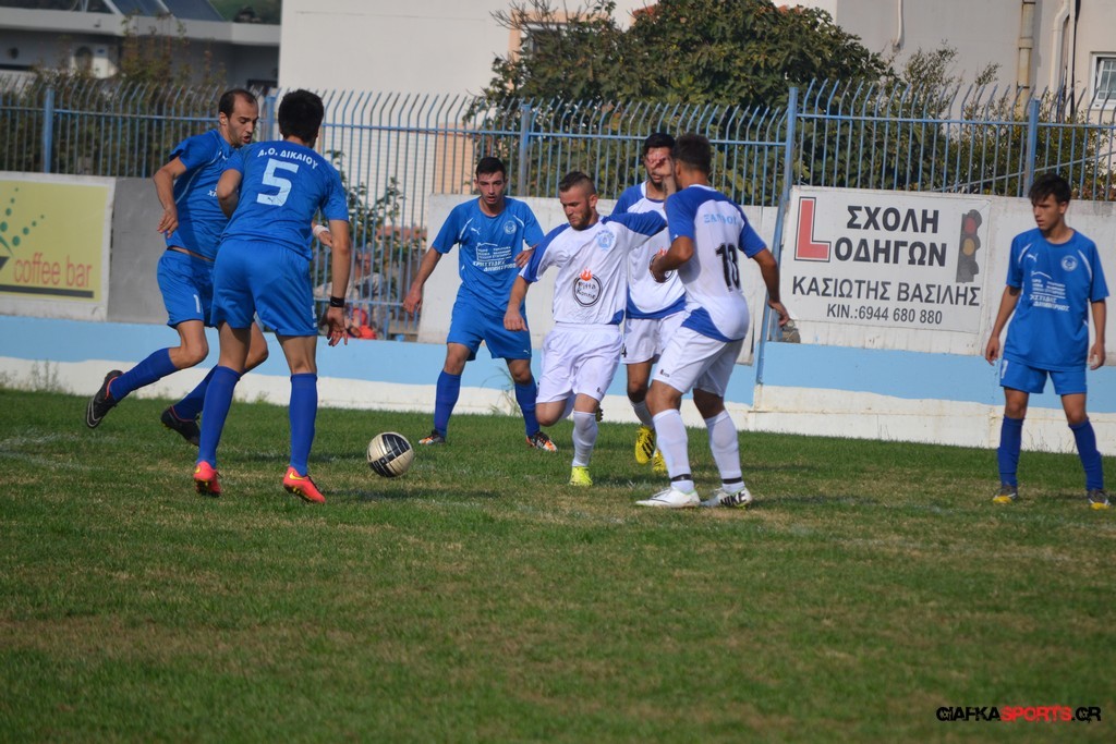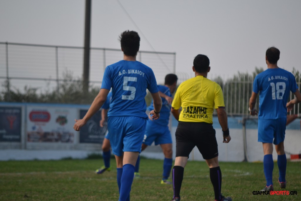 Α.Ο Δικαίου: Τριτσάρης, Καλαμπόκης Ε., Καλαμπόκης Δ. (53’ Δρόσος Μ.), Γιαννικουρής, Δημόπουλος, Πασενίδης, Δρόσος Σ., Γκεστένια (80’ Στάμος), Βρέττης Σ.Δ., Κότζα (86’ Καίσερλης), Ευθυμιάδης