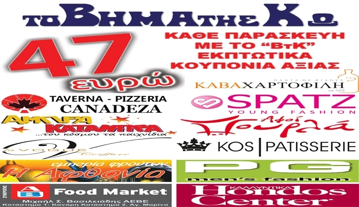Έτσι, κάθε Παρασκευή, το «ΒτΚ», θα κυκλοφορεί με εκπτωτικά κουπόνια συνολικής αξίας 47 ευρώ, για αγορές σε επιχειρήσεις του νησιού! Κάθε κουπόνι θα έχει διάρκεια ζωής μία εβδομάδα (από την Παρασκευή που θα κυκλοφορεί η εφημερίδα, μέχρι και την Πέμπτη της επόμενης εβδομάδας) και θα μπορεί να χρησιμοποιηθεί με τις αγορές σας στις επιχειρήσεις που παίρνουν μέρος σε αυτή την ενέργεια.