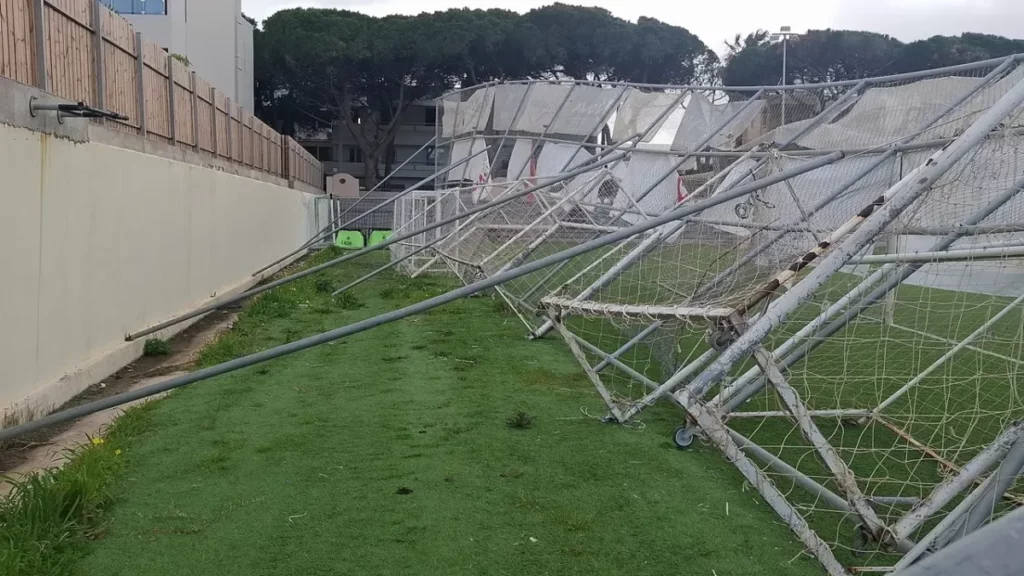 Οι φθορές εντοπίζονται στο μεταλλικό προστατευτικό πλέγμα, στους πάγκους του αγωνιστικού χώρου, καθώς και στο δημοσιογραφικό θεωρείο, καθιστώντας αναγκαία την προσωρινή αναστολή λειτουργίας του γηπέδου για λόγους ασφάλειας.