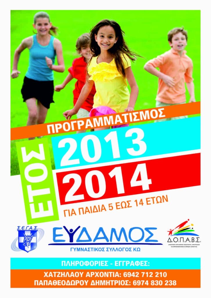 Τέλος την Κυριακή 22 Σεπτεμβρίου 2013 στο Νέο Στάδιο «Ανταγόρας» και ώρα 10:00, θα πραγματοποιηθεί από τους Τεχνικούς Ανάπτυξης της Ομοσπονδίας το πρωτοποριακό πρόγραμμα της Παγκόσμιας Ομοσπονδίας Στίβου «KIDS ATHLETICS», με στόχο να γνωρίσουν τα παιδιά τον Κλασσικό Αθλητισμό μέσα από παιχνίδια.